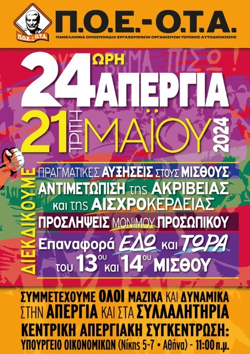 Στην 24ωρη απεργία της ΠΟΕ ΟΤΑ συμμετέχουν σήμερα, Τρίτη 21 Μαϊου, οι εργαζόμενοι στην Υπηρεσία Καθαριότητας του Δήμου Κω, με συνέπεια την μη αποκομιδή των απορριμμάτων.