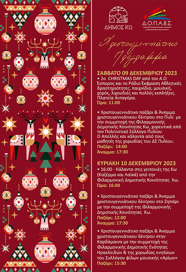 ΔΟΠΑΒΣ: Οι Χριστουγεννιάτικες εκδηλώσεις του Σαββατοκύριακου (9-10/12)