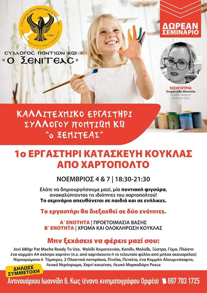 Ο Σύλλογος Ποντίων Κω ο "Ξενιτέας", σας καλεί να συμμετάσχετε στο 1ο Δωρεάν Καλλιτεχνικό σεμινάριο με εισηγήτρια την Graphic Designer και Illustrator Artist