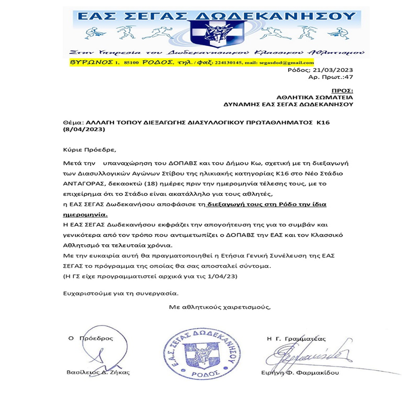 “Ο ίδιος ο ΔΟΠΑΒΣ, δηλαδή ο κ. Χατζηχριστοφής δηλώνει ότι το νέο στάδιο ΑΝΤΑΓΟΡΑΣ είναι ακατάλληλο για αγώνες!!!! Είναι η μεγάλη επιτυχία τους στον αθλητισμό…