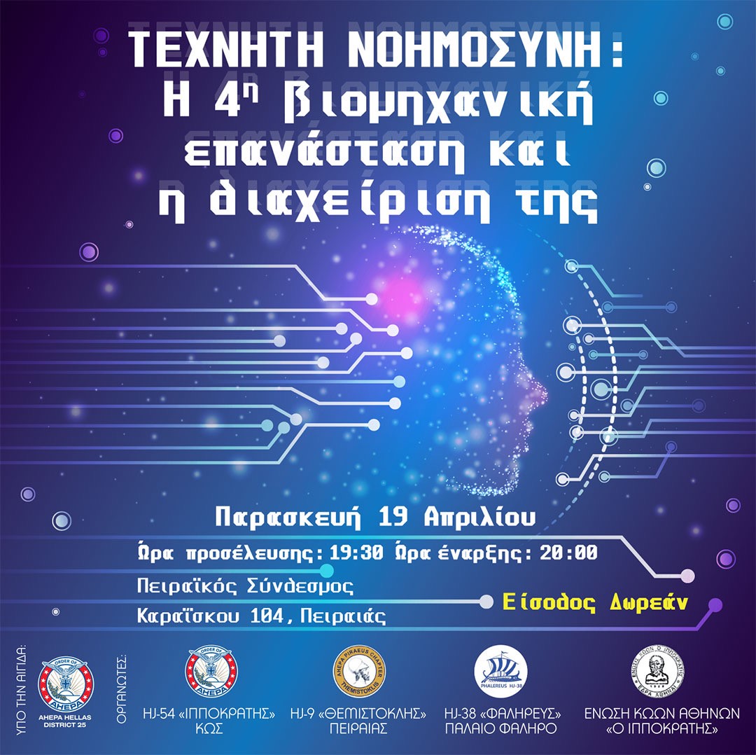 Τα μέλη της ΑΧΕΠΑ, συνεχίζοντας την πρωτοποριακή τους πορεία, σας προσκαλούν σε μία πολύ σημαντική εκδήλωσημε θέμα την Τεχνητή Νοημοσύνη. Μέσα από εμπεριστατωμένες ομιλίες, η εκδήλωση θα αποκαλύψει τα μυστικά της Τεχνητής Νοημοσύνης, εστιάζοντας σε θέματα που καθορίζουν το παρόν και το μέλλον της.