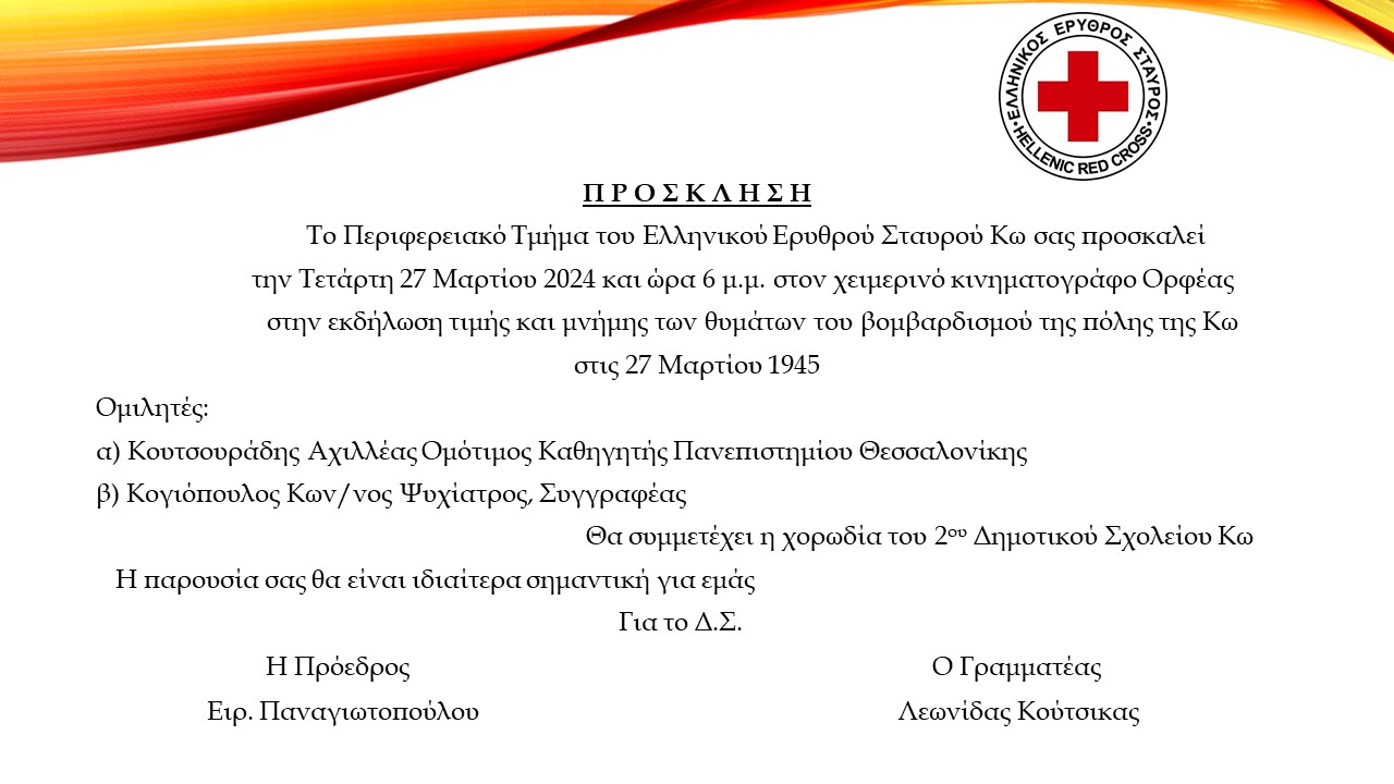 Εκδήλωση τιμής και μνήμης του Ερυθρού Σταυρού Κω στις 27/3