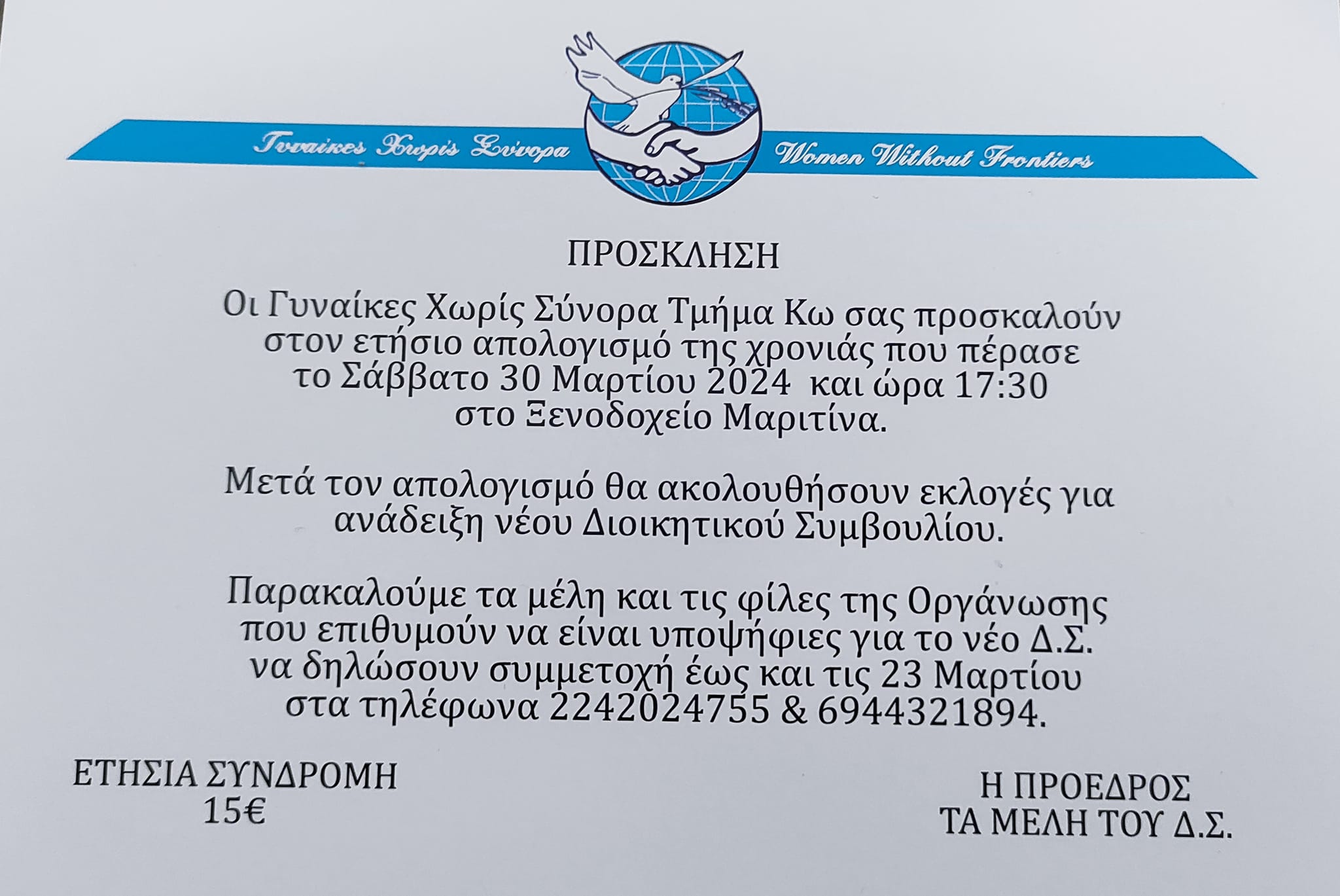 Καλούμε τα μέλη και τις φίλες της οργάνωσης τον ετήσιο απολογισμό της Οργάνωσης και στις εκλογές που θα ακολουθήσουν για την ανάδειξη νέου Δ.Σ.