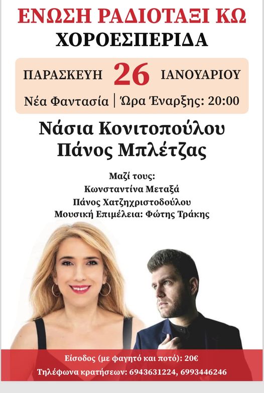 Ένωση Ραδιοταξί Κω: Χοροεσπερίδα στις 26/1