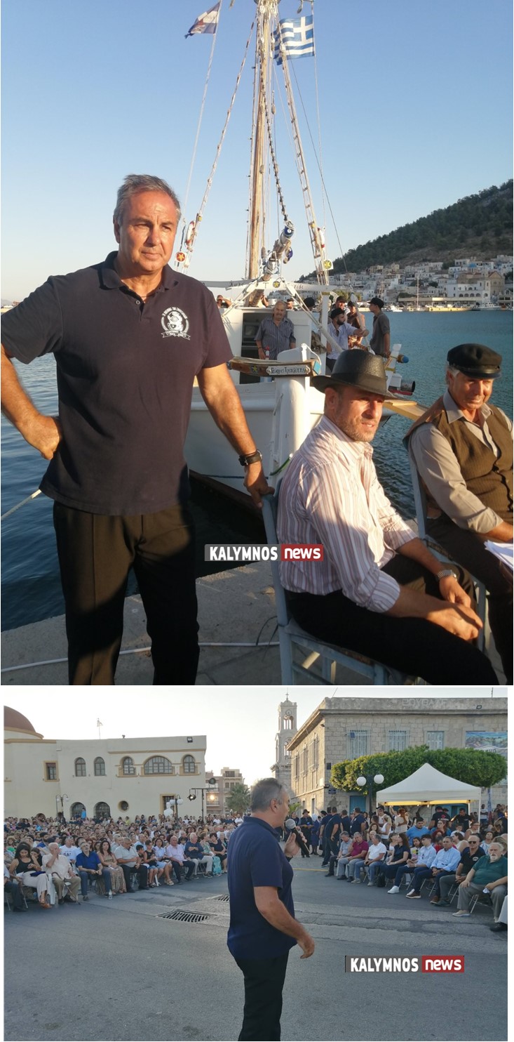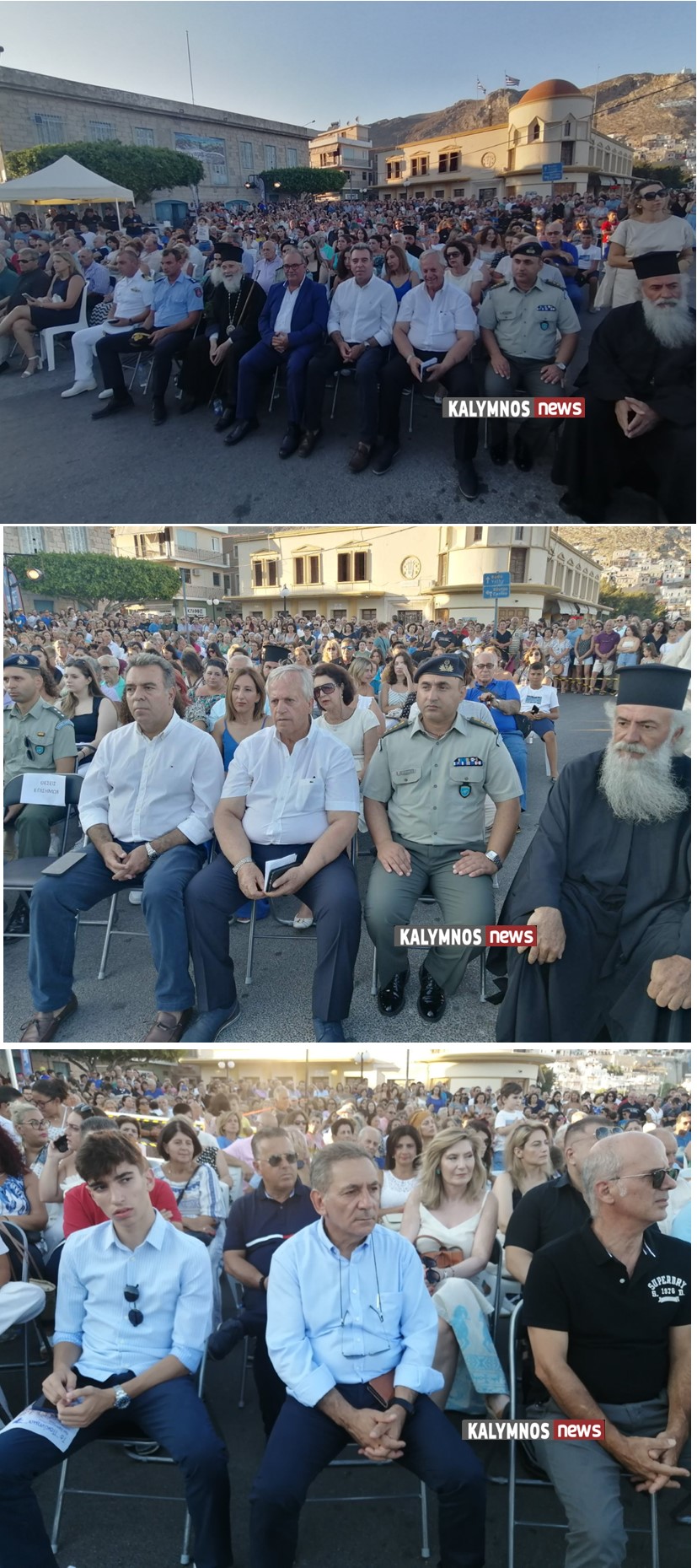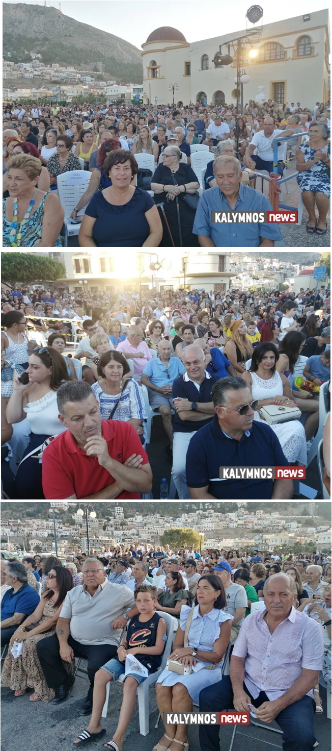 Κάτοικοι της Καλύμνου, επισκέπτες του νησιού, μικροί και μεγάλοι, κατέκλυσαν το χώρο μπροστά από το Ναυτικό Μουσείο, μεταξύ Επαρχείου και Δημαρχείου. Ο μεγάλος αριθμός καρεκλών που τοποθετήθηκε δεν ήταν αρκετός για να καλύψει όλο τον κόσμο που παραβρέθηκε. Η προσέλευση του ήταν συνεχής καθ’ όλη τη διάρκεια της εκδήλωσης και αρκετός ο κόσμος που όρθιος την παρακολούθησε, από την προκυμαία και τον χώρο που είχε οριοθετηθεί.