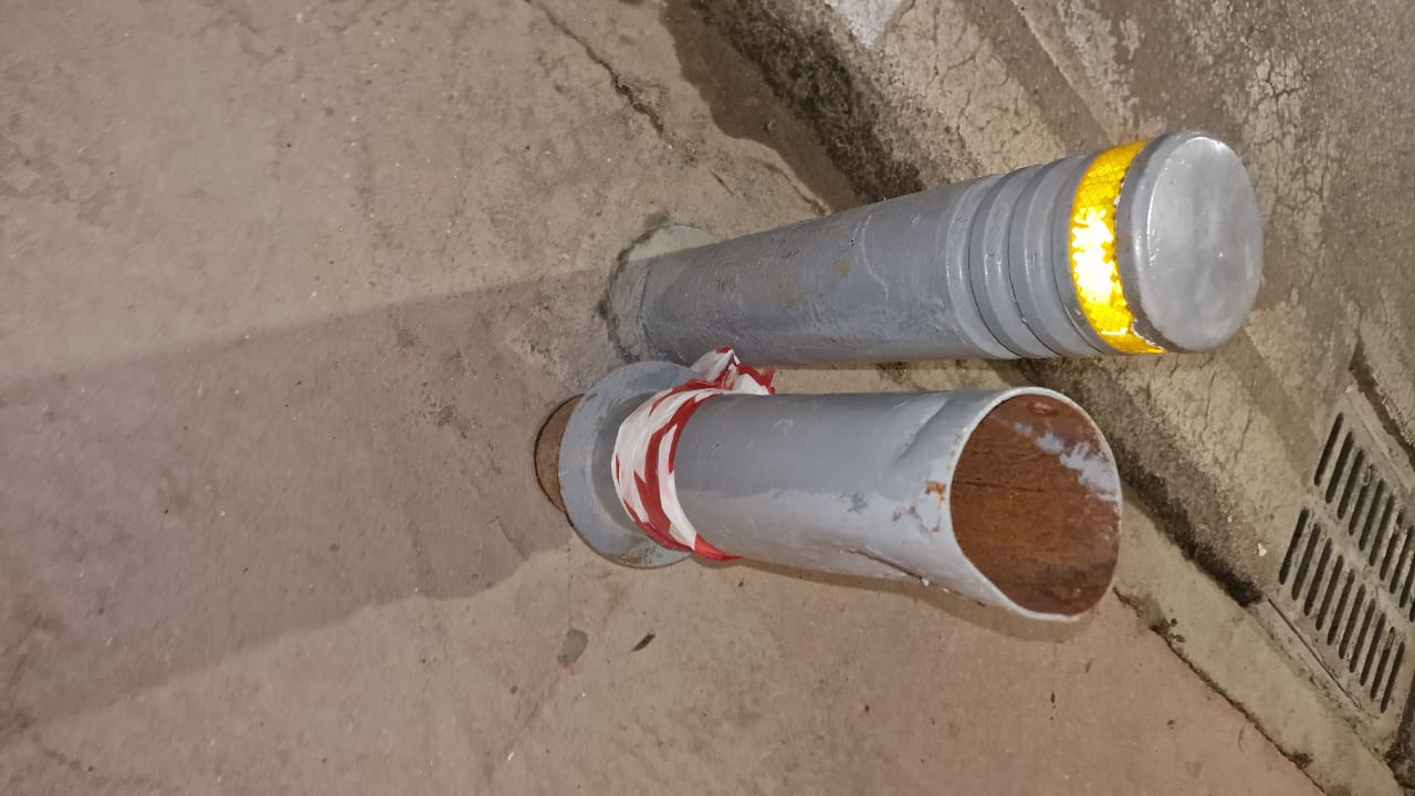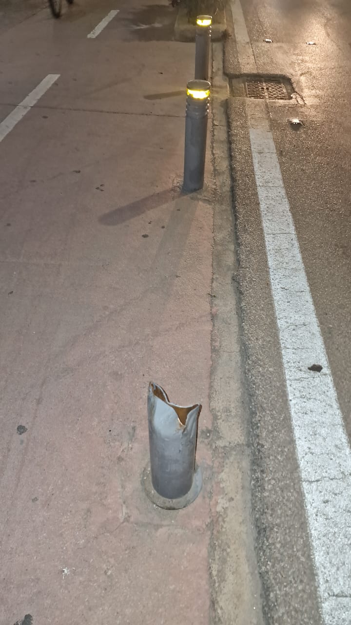 Όπως βλέπετε και στις φωτογραφίες, τα κολωνάκια έχουν υποστεί ζημιές και έτσι είναι επικίνδυνα να τραυματιστεί κάποιος σοβαρά εάν πέσει πάνω τους και γι’ αυτό ζητούν την άμεση απομάκρυνση και αντικατάστασή τους.