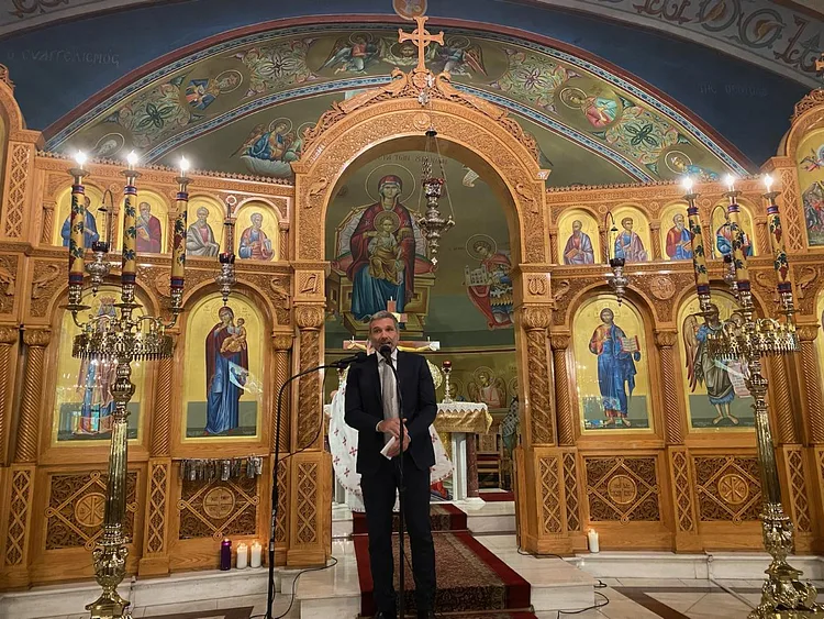 Ακολούθησε δεξίωση και βιβλιοπαρουσίαση στην αίθουσα της εκκλησίας με τον συγγραφέα Μανώλη Κασσώτη (Manolis Cassotis) να μιλάει για το βιβλίο «Τα Δωδεκάνησα κατά τον πόλεμο της ανεξαρτησίας του 1821» του Μανώλη Μακρή (Manolis Makris), το οποίο ο Κασσώτης και ο Δημοσθένης Τριανταφύλλου (Demosthenes Triantafillou) μετέφρασαν από τα ελληνικά στα αγγλικά. Αντίτυπα του βιβλίου ήταν διαθέσιμα για αγορά στην εκδήλωση.