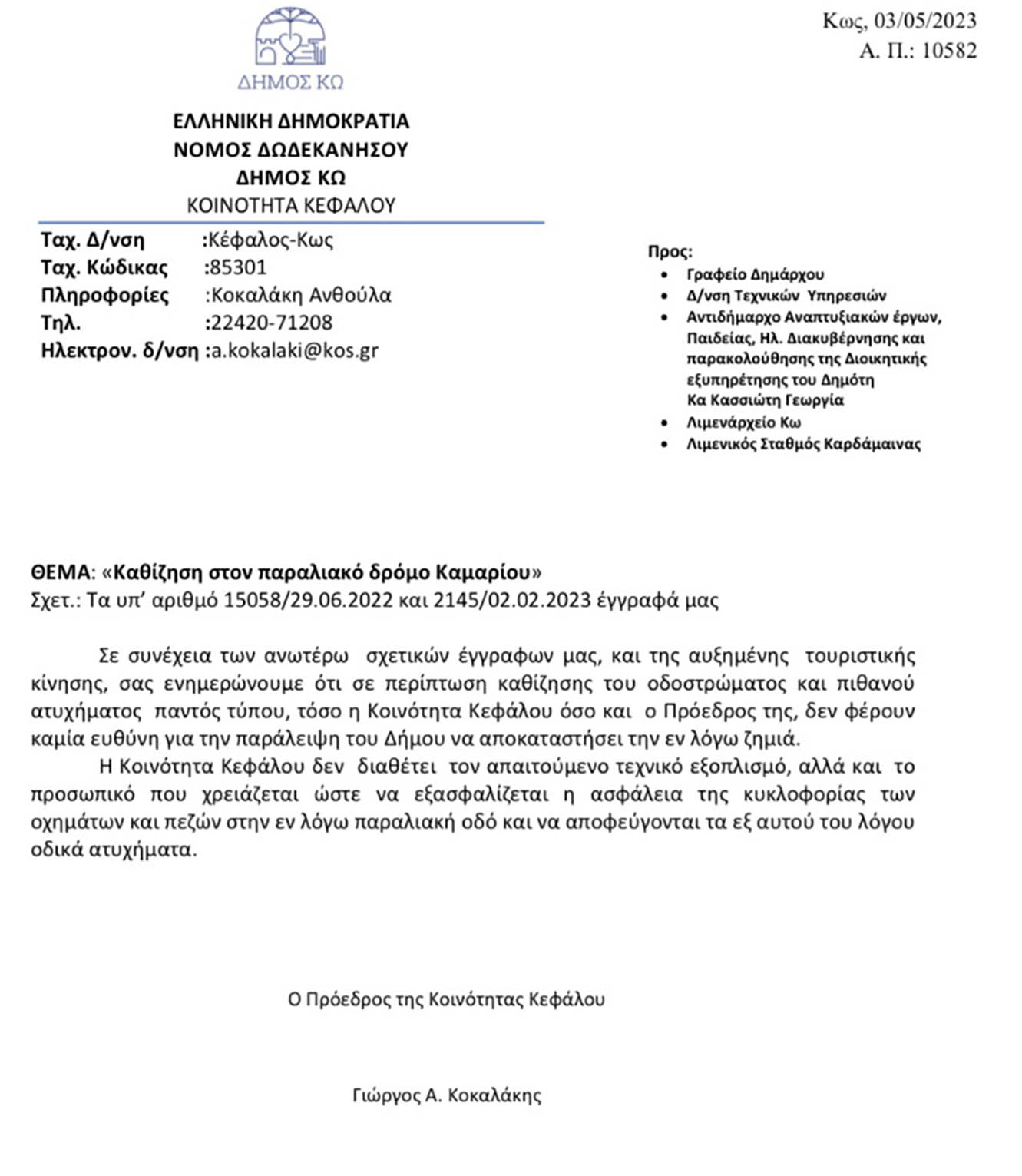 HomeΤοπικάΕπιστολές του Προέδρου της Κοινότητας Κεφάλου Γ. Κοκαλάκη σε Δήμο και ΔΕΥΑΚ για τα προβλήματα στο χωριό
