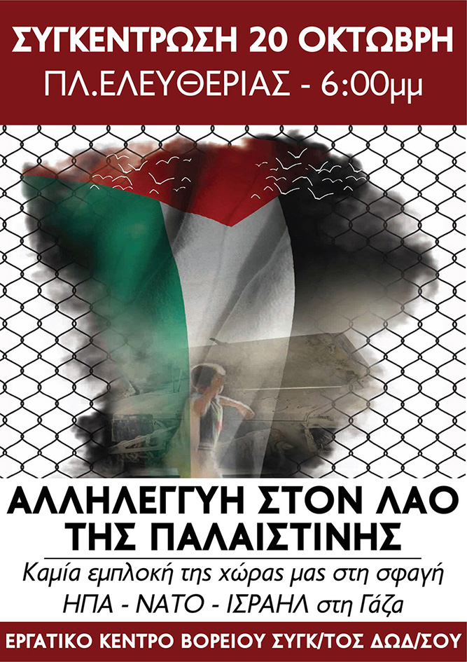 Εργ. Κέντρο: Συγκέντρωση την Παρασκευή 20/10 για την Παλαιστίνη