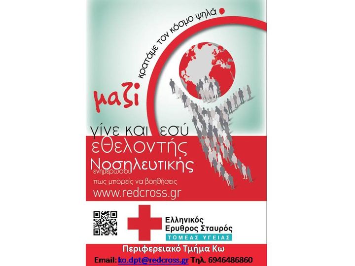 Tο Περιφερειακό Τμήμα του Ελληνικού Ερυθρού Σταυρού Κω απευθύνει πρόσκληση σε όλους τους κατοίκους της Κω ανεξαρτήτως φύλου, που ενδιαφέρονται να πλουτίσουν τη ζωή τους προσφέροντας ανιδιοτελώς τις υπηρεσίες τους μέσω ενός παγκόσμιου Εθελοντικού Οργανισμού προς όφελος των πλέον ευάλωτων ομάδων πληθυσμού.