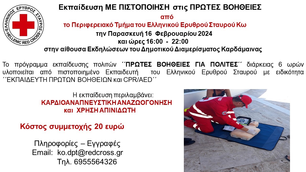 Ερυθρός Σταυρός Κω: Εκπαίδευση πρώτων βοηθειών στην Καρδάμαινα
