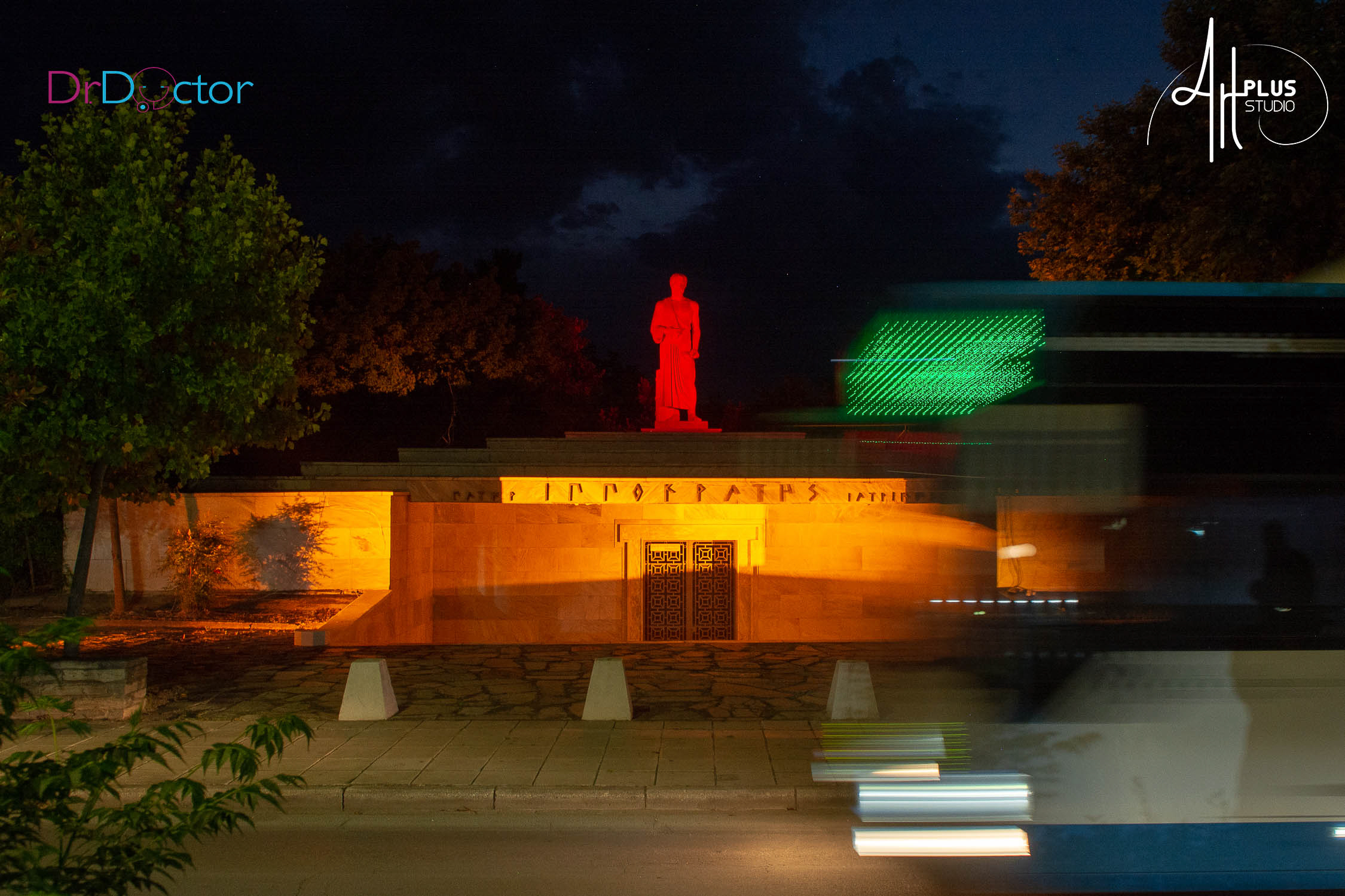 Στη χθεσινή επιστημονική εκδήλωση που διοργάνωσε η Νοσοκομειακή Υπηρεσία Αιμοδοσίας με τη Διοίκηση του Γ.Ν.ΛΑΡΙΣΑΣ υπό την αιγίδα της 5ης Υ.Πε, της Περιφέρειας Θεσσαλίας, του Δήμου Λαρισαίων και του Ιατρικού Συλλόγου Λάρισας φώτισαν κόκκινο το άγαλμα του Ιπποκράτη – Πατέρα της Ιατρικής για να τιμήσουν την Παγκόσμια Ημέρα του Εθελοντή Αιμοδότη.