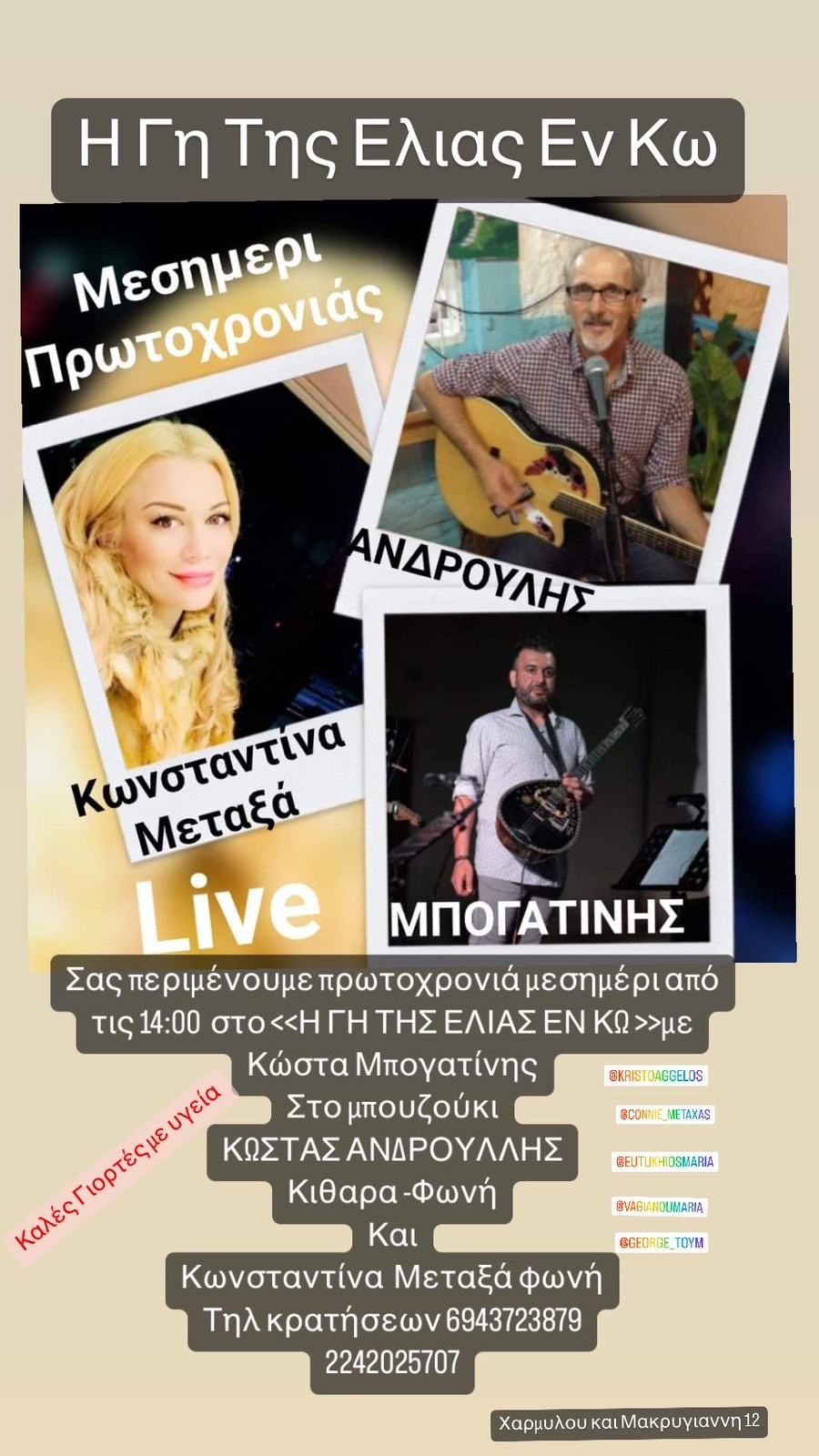 26/12/2022 δεύτερη μέρα Χριστουγέννων από τις 14 :00 η ώρα με live κρητικά και νησιώτικα