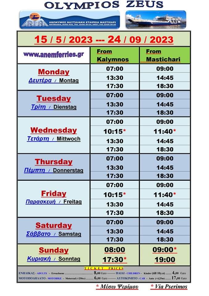 H AΝΕΜ Ferries φέτος σας ταξιδεύει και στη Ψέριμο με το Olympios zeus.