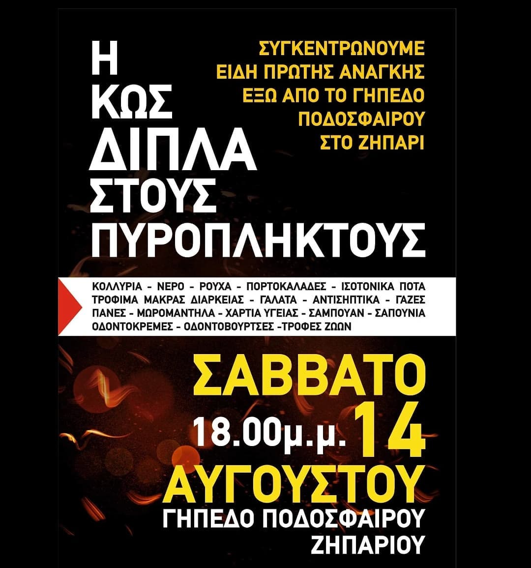 H KΩΣ ΔΙΠΛΑ ΣΤΟΥΣ ΠΥΡΟΠΛΗΚΤΟΥΣ - ΣΥΓΚΕΝΤΡΩΣΗ ΕΙΔΩΝ ΠΡΩΤΗΣ ΑΝΑΓΚΗΣ