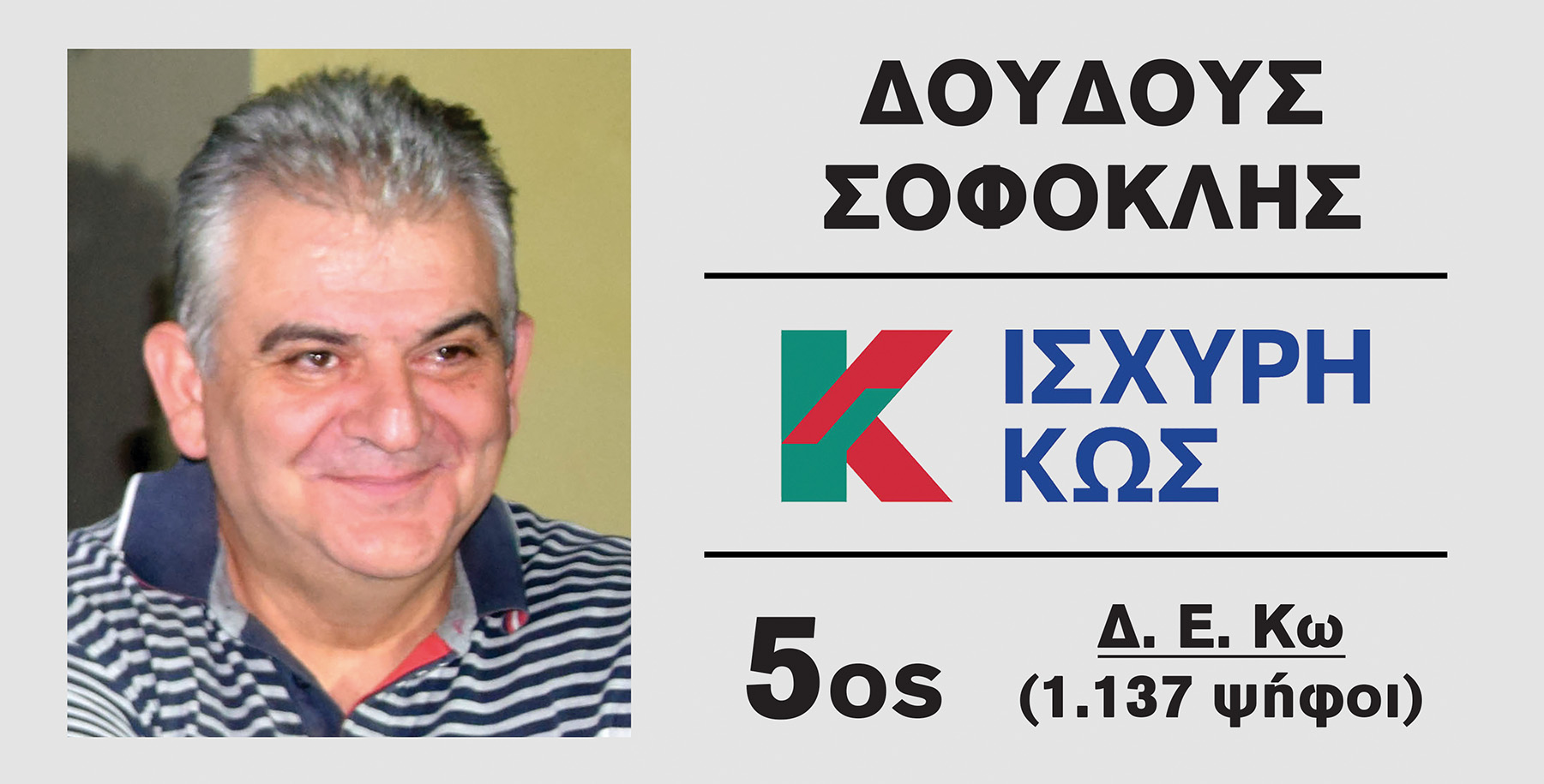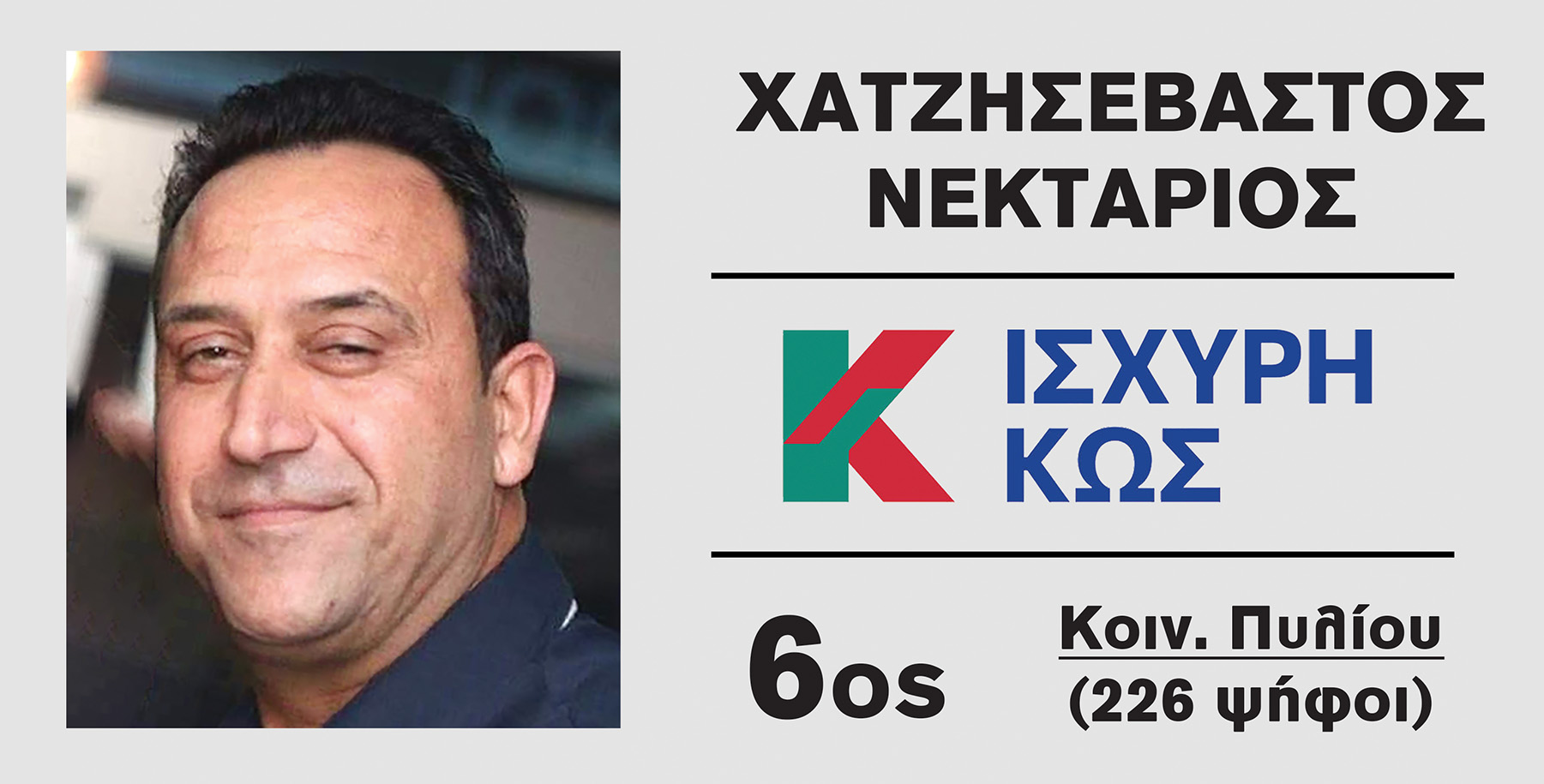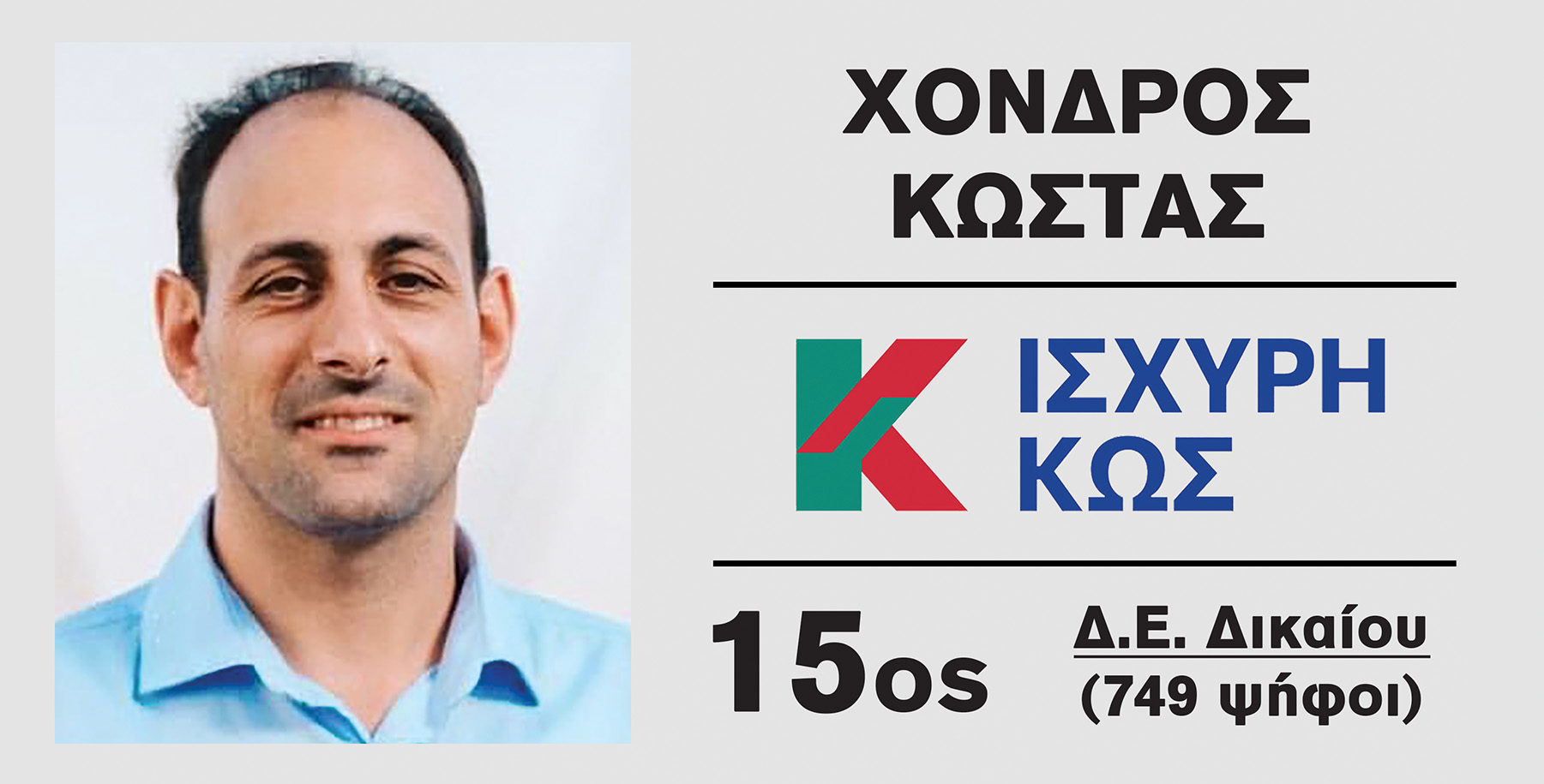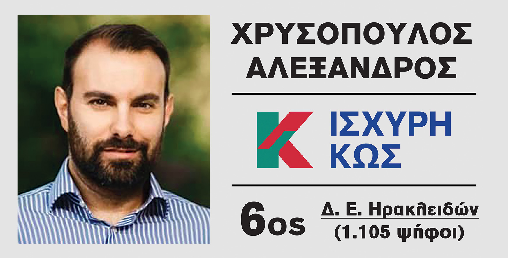 Θα ήθελα, μέσα από τη καρδιά μου, να ευχαριστήσω όλους όσοι με πίστεψαν και με τιμήσαμε με τη ψήφο σας για ακόμα μια φορά. Είναι τιμή μου να είμαι μέλος της οικογένειας της Δύναμης Αλλαγής, δίπλα σε όλους αυτούς τους τόσο αξιόλογους και ικανότατους ανθρώπους και φίλους. Συγχαρητήρια στην ομάδα της Ισχυρής Κω και τον κ Νικηταρά για την επανεκλογή τους και ελπίζω αυτή τη πενταετία να την αξιοποιήσουν με καλύτερο τρόπο, δίνοντας στον τόπο μας, την προσοχή που του αξίζει και αντιμετωπίζοντας σημαντικά προβλήματα καθημερινότητας, τόσο στη πόλη όσο και στα χωριά.