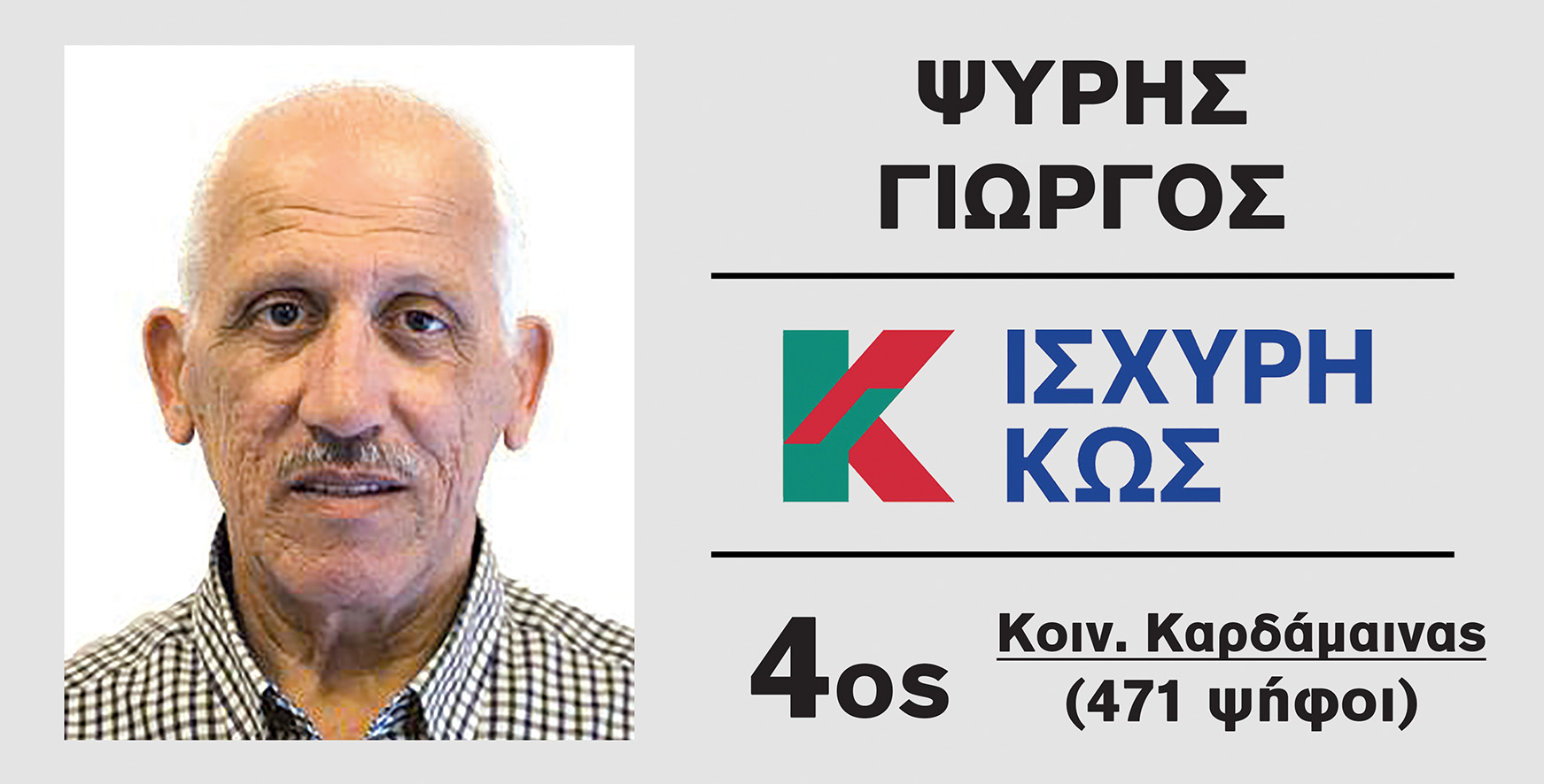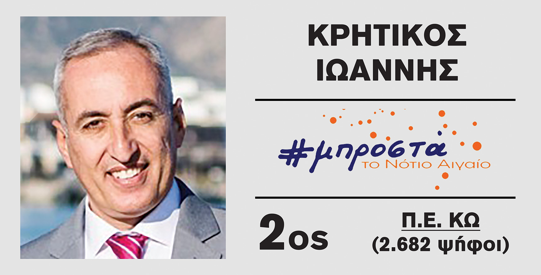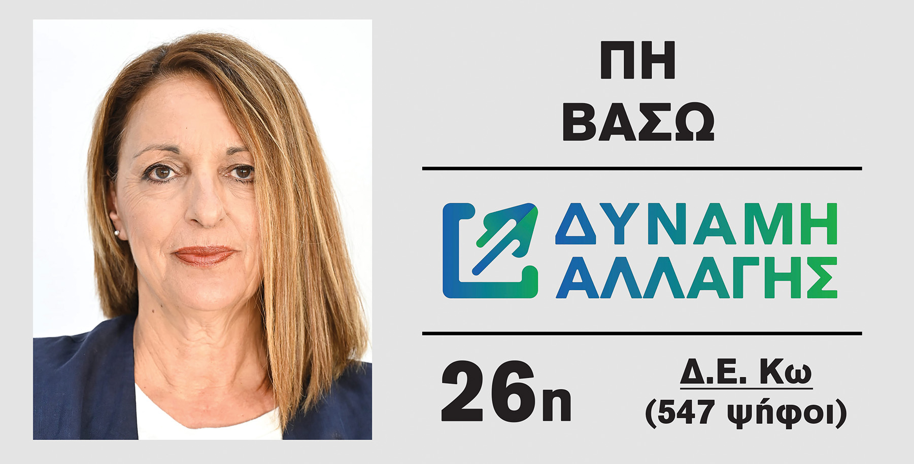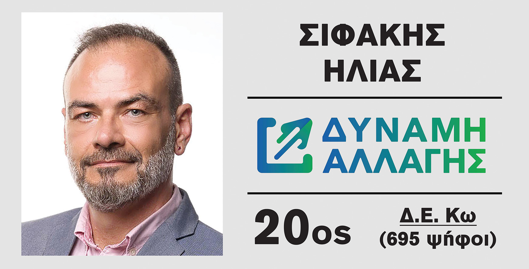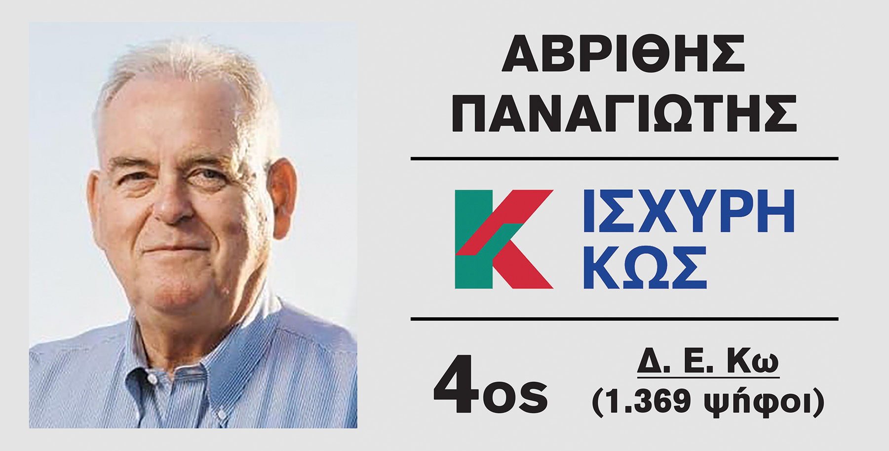 Θα ήθελα, μέσα από τη καρδιά μου, να ευχαριστήσω όλους όσοι με πίστεψαν και με τιμήσαμε με τη ψήφο σας για ακόμα μια φορά. Είναι τιμή μου να είμαι μέλος της οικογένειας της Δύναμης Αλλαγής, δίπλα σε όλους αυτούς τους τόσο αξιόλογους και ικανότατους ανθρώπους και φίλους. Συγχαρητήρια στην ομάδα της Ισχυρής Κω και τον κ Νικηταρά για την επανεκλογή τους και ελπίζω αυτή τη πενταετία να την αξιοποιήσουν με καλύτερο τρόπο, δίνοντας στον τόπο μας, την προσοχή που του αξίζει και αντιμετωπίζοντας σημαντικά προβλήματα καθημερινότητας, τόσο στη πόλη όσο και στα χωριά.