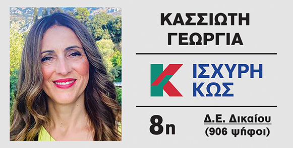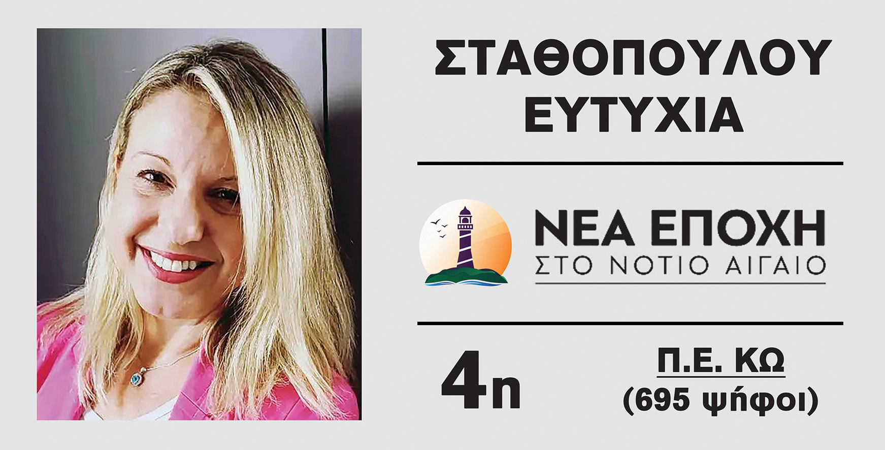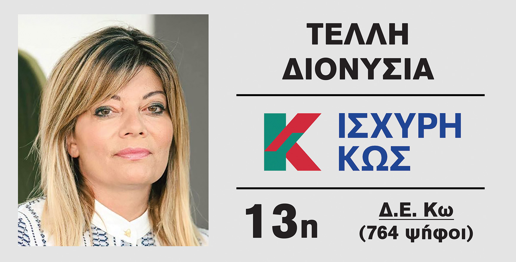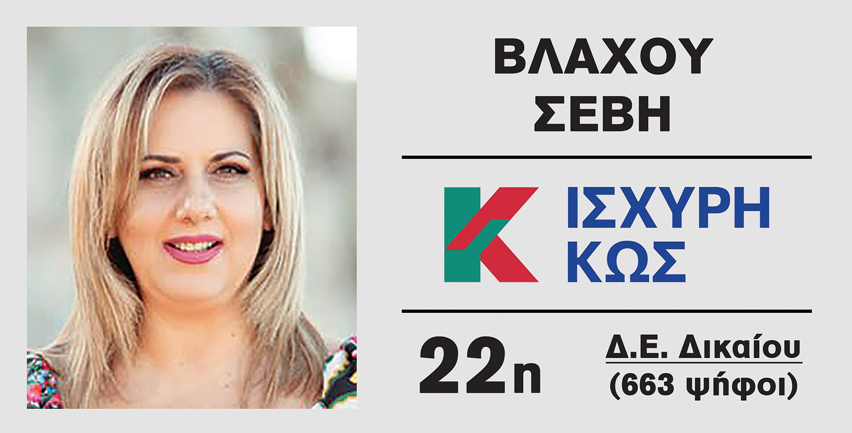 Θέλω να ευχαριστήσω όλους όσοι μας στήριξαν, τόσο την παράταξη, όσο και εμένα προσωπικά, καθώς στην παρθενική μου προσπάθεια, με εξέλεξαν Δημοτική Σύμβουλο, δίνοντάς μου την ευκαιρία να κάνω ένα όνειρο μου πραγματικότητα. Επίσης ευχαριστώ και την οικογένειά μου και τους φίλους για την στήριξή τους και δεσμεύομαι ότι θα δώσω τον καλύτερό μου εαυτό, από όποιο πόστο και αν μου ανατεθεί από τον Δήμαρχο, για να προσφέρω στους συνδημότες μου και να παλέψω για την Κω μας.