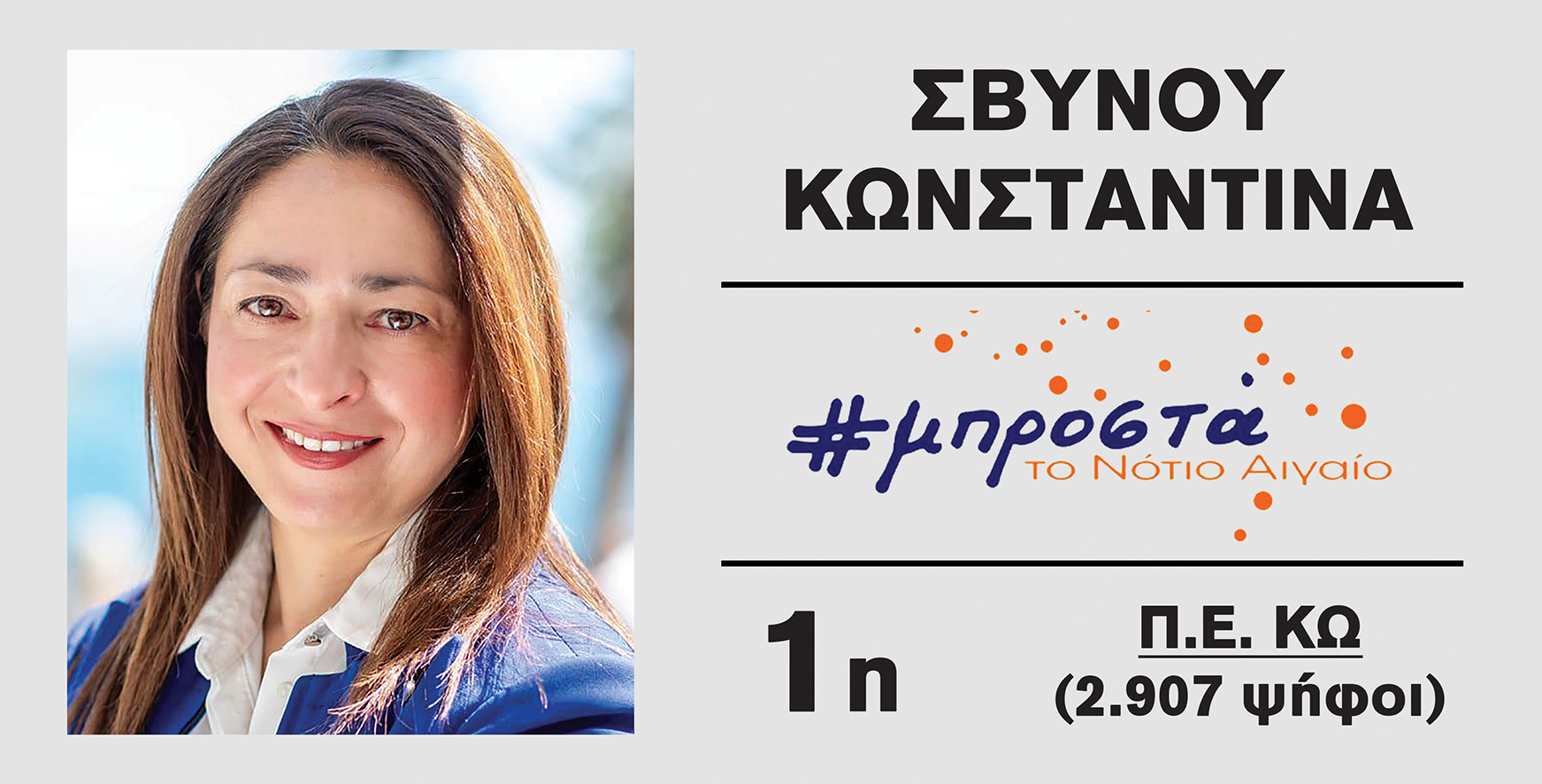 Σημαντικές είναι οι αλλαγές και στην Περιφέρεια Νοτίου Αιγαίου, παρά το ότι παρέμεινε στο “τιμόνι” ο Γιώργος Χατζημάρκος, αφού από τις 5 έδρες που καταλαμβάνει η Περιφερειακή Ενότητα Κω, οι 3 (Ν. Σβύνου, Χ. Ναβροζίδης και Ε. Σταθοπούλου) θα είναι για πρώτη φορά μέλη του Περιφερειακού Συμβουλίου ενώ θα έχουμε σίγουρα και νέο Έπαρχο, καθώς ο νυν κ. Ι. Καμπανής δεν εξελέγη, με την κ. Ντίνα Σβύνου που ήρθε 1η σε ψήφους, να είναι το απόλυτο φαβορί να τον αντικαταστήσει (ο Περιφερειάρχης έχει δικαίωμα να ορίσει εκείνος όποιον επιθυμεί στη θέση του Επάρχου, ανεξάρτητα από το αποτέλεσμα της σταυροδοσίας).