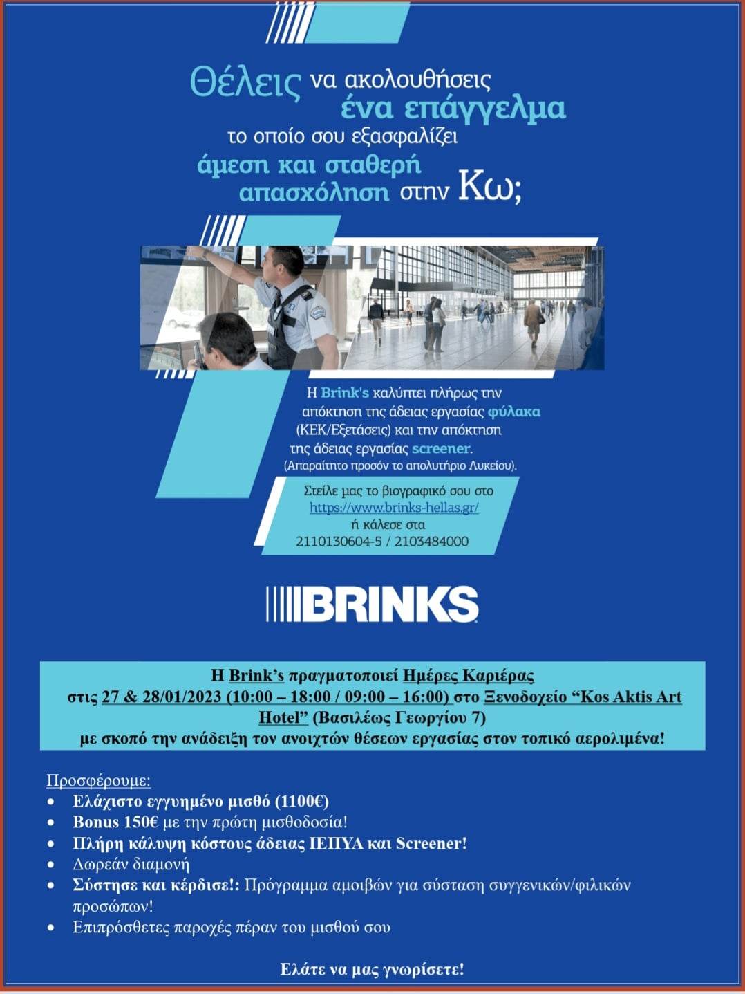 "Ημέρες καριέρας" από την Brink's στην Κω (27-28/1)