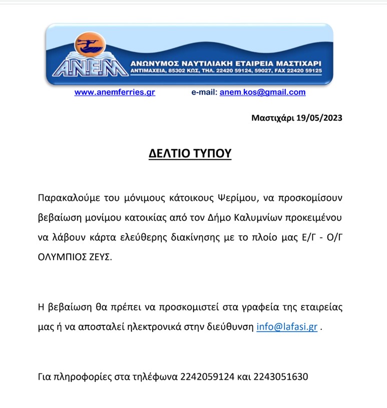 Κάρτα ελεύθερης μετακίνησης για τους μόνιμους κατοίκους Ψερίμου με το “ΟΛΥΜΠΙΟΣ ΖΕΥΣ”