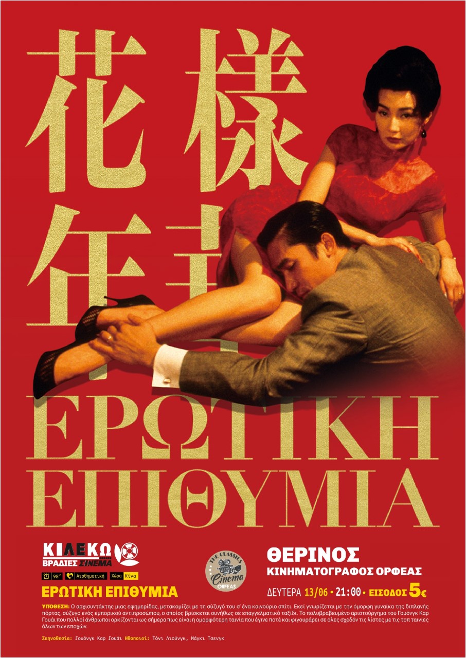 Το καλοκαιρινό ταξίδι με την ΚΙ.ΛΕ.ΚΩ συνεχίζεται, αυτή τη φορά τη Δευτέρα 13/06 στις 21:00 στον Θερινό Κινηματογράφο Ορφέα, με το πολυβραβευμένο αριστούργημα του Γουόνγκ Καρ-Βάι Ερωτική Επιθυμία.