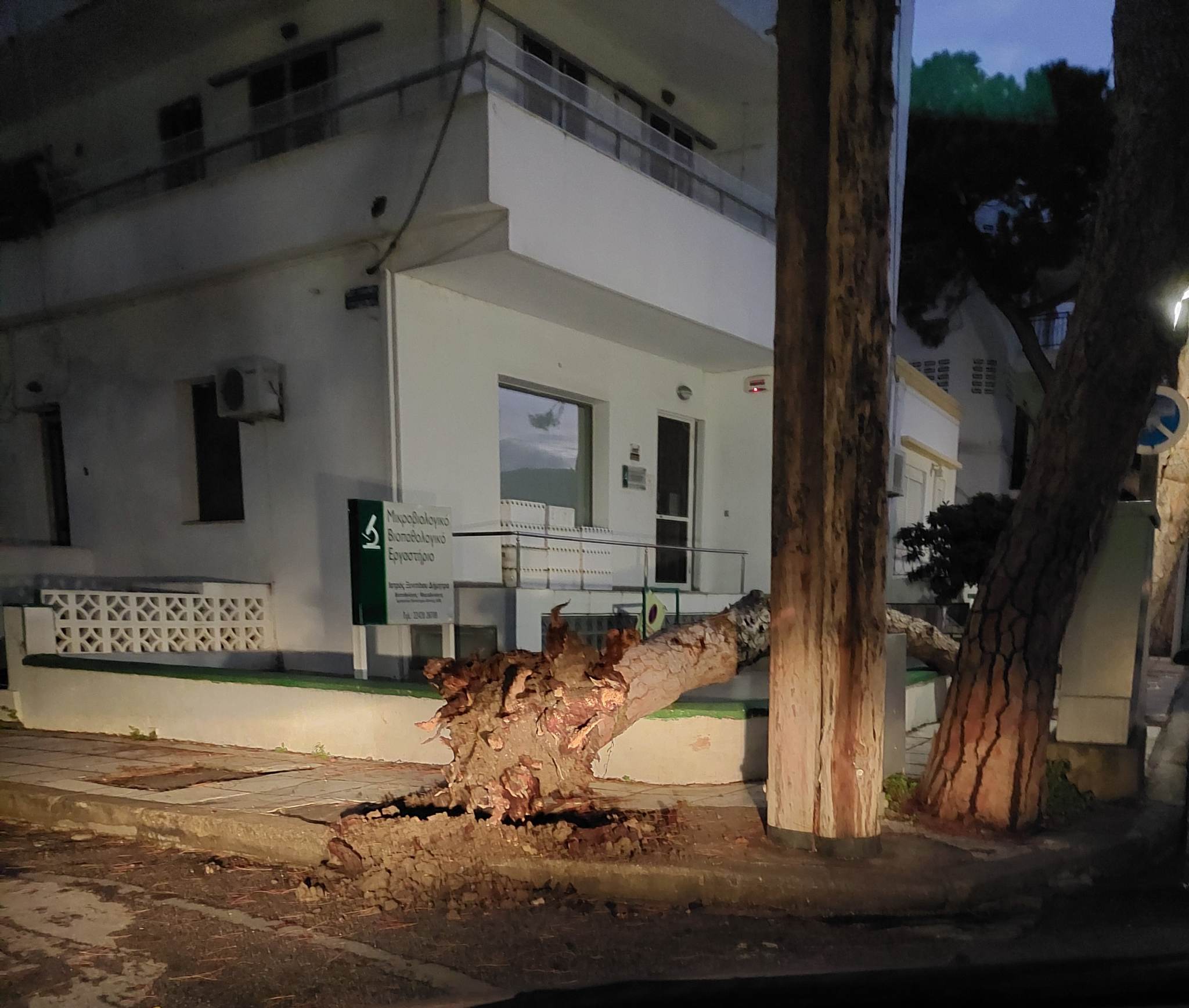 Από τύχη δεν είχαμε κάποιο θύμα, χθες το βράδυ, όταν λόγω των δυνατών ανέμων ξεριζώθηκε ένα τεράστιο πεύκο στην οδό Αρτεμισίας, το οποίο ευτυχώς έπεσε μέσα σε ιδιωτικό χώρο (ιατρείο, το οποίο ήταν κλειστό) και έτσι δεν τραυματίστηκε κανείς.