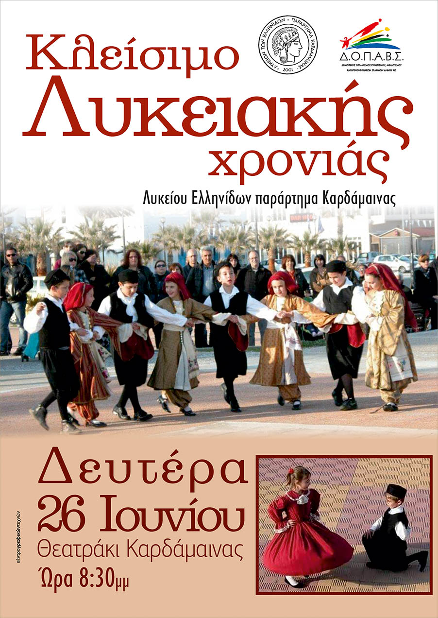 Στο πλαίσιο των Θερινών Πολιτιστικών Εκδηλώσεων των Ιπποκρατείων, το Λύκειο Ελληνίδων-Παράρτημα Καρδάμαινας με την υποστήριξη του Δημοτικού Οργανισμού Πολιτισμού, Αθλητισμού και Βρεφονηπιακών Σταθμών Δήμου Κω, σας προσκαλεί στο «Κλείσιμο της λυκειακής χρονιάς» με χορούς από όλη την Ελλάδα, την Δευτέρα  26 Ιουνίου  2023, στο Θεατράκι Καρδάμαινας και ώρα 20:30.