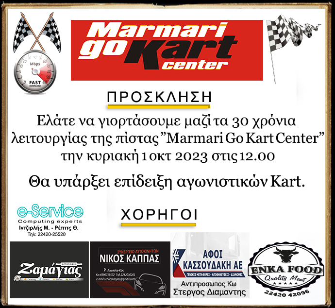 Marmari Go Kart: 1/10 ελάτε να γιορτάσουμε μαζί τα 30 χρόνια λειτουργίας μας