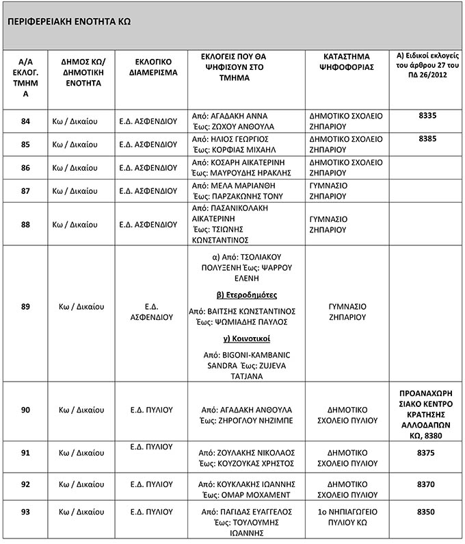 Δείτε παρακάτω σε ποιο εκλογικό τμήμα στην Κω ψηφίζετε: