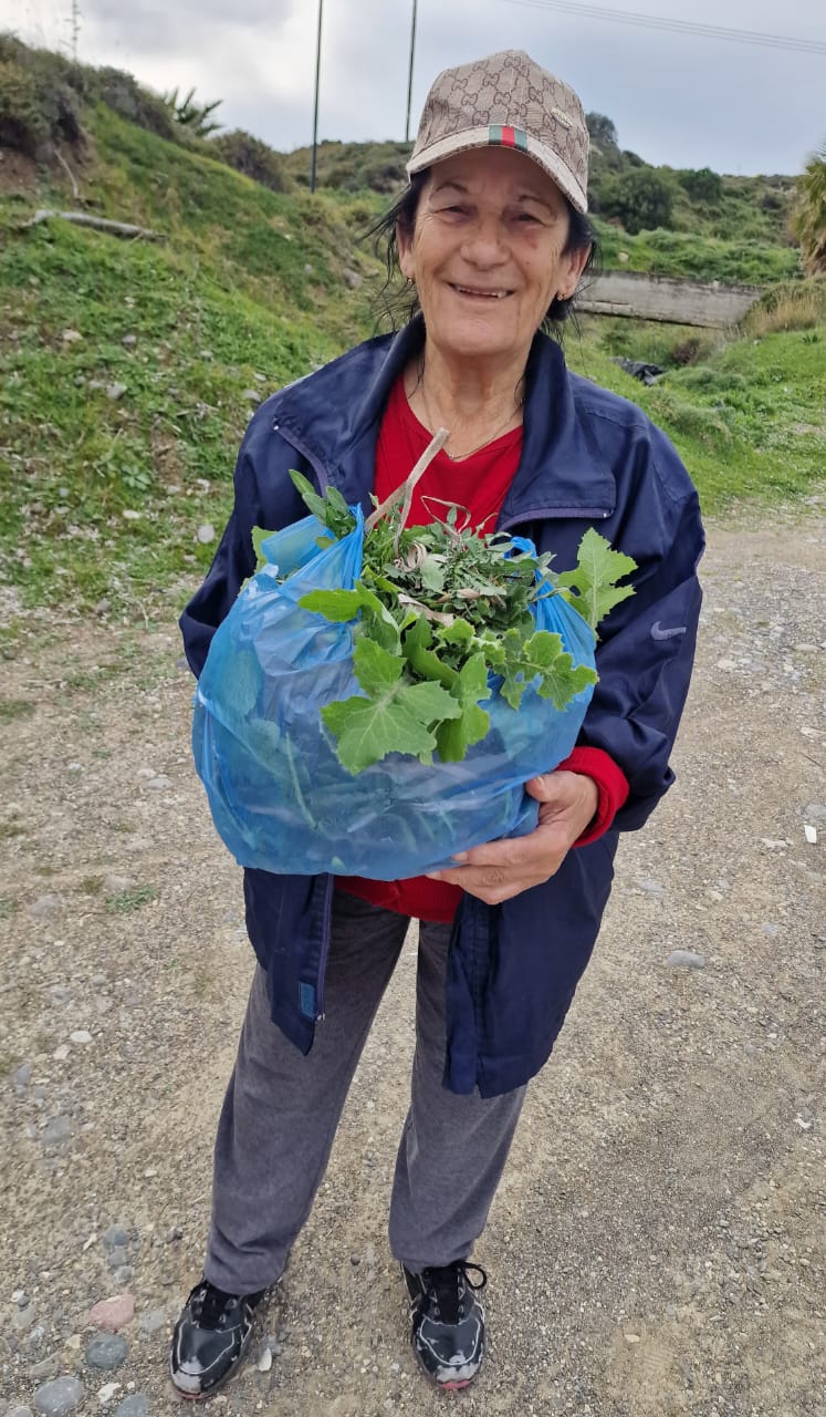 Συχνά, τόσο η ίδια, όπως και αρκετοί άλλοι συμπολίτες μας, βρίσκονται στους αγρούς για να μαζεύουν χόρτα, ώστε να εμπλουτίσουν το γεύμα τους.