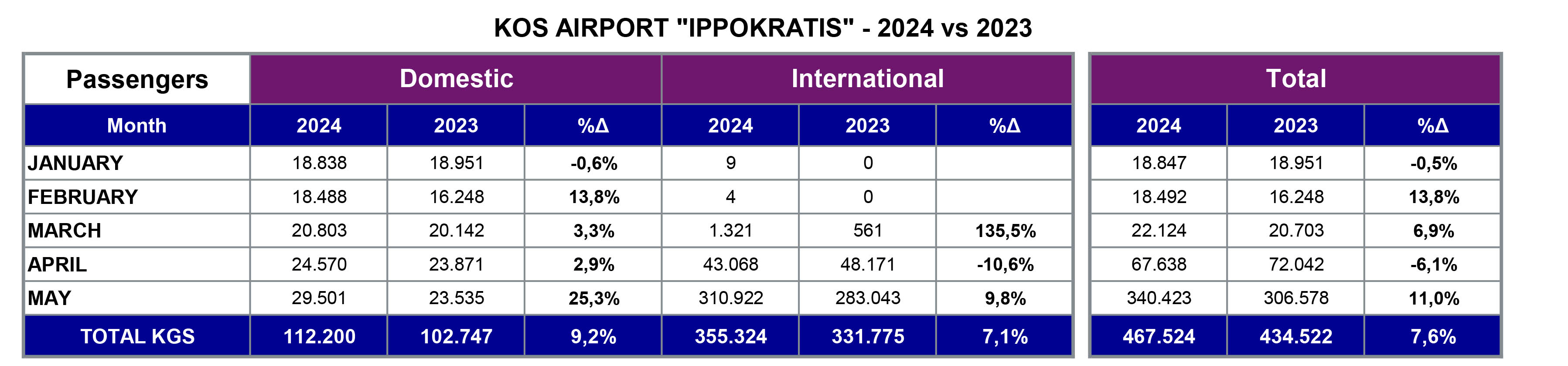 Πιο συγκεκριμένα ήρθαν 171.128, ενώ η συνολική κίνηση (αφίξεις αναχωρήσεις εξωτερικού) ήταν 310.922 επιβάτες, έναντι 283.043 το 2023 (+9,8%).