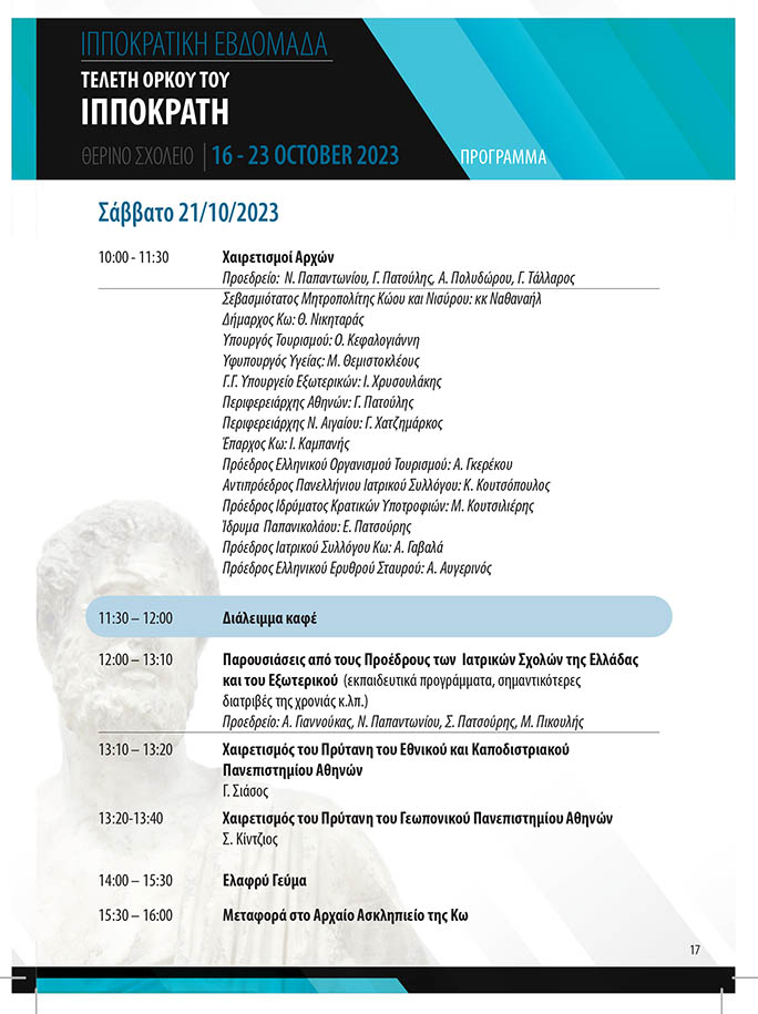 Στο πλαίσιο της «ΙΠΠΟΚΡΑΤΙΚΗΣ ΕΒΔΟΜΑΔΑΣ 16 - 22/10/23», στο Διεθνές Ιπποκράτειο Ίδρυμα Κω παρουσιάστηκε μια εξαιρετική εκδήλωση για την  ανάδειξη της «ευζωίας με Ιπποκρατική προσέγγιση στον τουρισμό» και με έμφαση στην Κω ως προορισμό, που οργάνωσε το Διεθνές Ιπποκράτειο Ίδρυμα Κω.