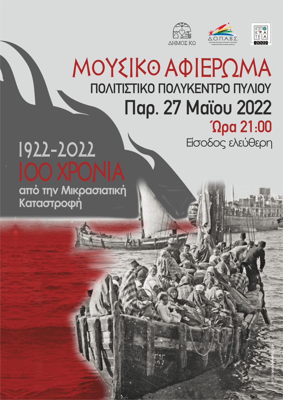 Ο Δ.Ο.Π.Α.Β.Σ. στα πλαίσια των Πολιτιστικών εκδηλώσεων 2022 παρουσιάζει Μουσικό αφιέρωμα στην Επέτειο των 100 χρόνων από την Μικρασιατική Καταστροφή την Παρασκευή 27 Μαΐου και ώρα 21:00 στο Πολιτιστικό Πολύκεντρο Πυλίου.
