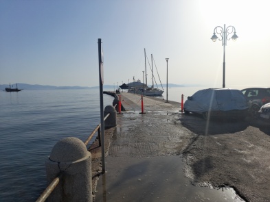 ---Τους έχουμε ενημερώσει! Δεν καταλαβαίνω την αδιαφορία τους! Γνωρίζουν όλο το καλοκαιρινό πρόγραμμα της προσέγγισης κρουαζιερόπλοιων και δεν έχει γίνει το ελάχιστο της προετοιμασίας αυτού του χώρου. Τα δεμένα τουριστικά στην σκάλα έπρεπε να λείπουν, γιατί η παρουσία τους και απαγορεύεται και εμποδίζει τον έλεγχο segen!  Η πλατεία είναι γεμάτη αυτοκίνητα, που θα σταθούν οι άνθρωποι;  Κοιτάξτε το παρκαρισμένο αυτοκίνητο που κλείνει το μισό πλάτος της προβλήτας! Οι λακκούβες και τα στάσιμα νερά μπορoύν να προκαλέσουν ατύχημα! Κοιτάξτε: όταν τα τουριστικά φύγουν και επιτραπεί στις λάντζες να βγάλουν τους επισκέπτες, πού θα σταθούν; Δεν έχει και ένα υπεύθυνο του Λιμενικού ταμείου να παραπονεθούμε, να πάρει μέτρα, να βοηθήσει!