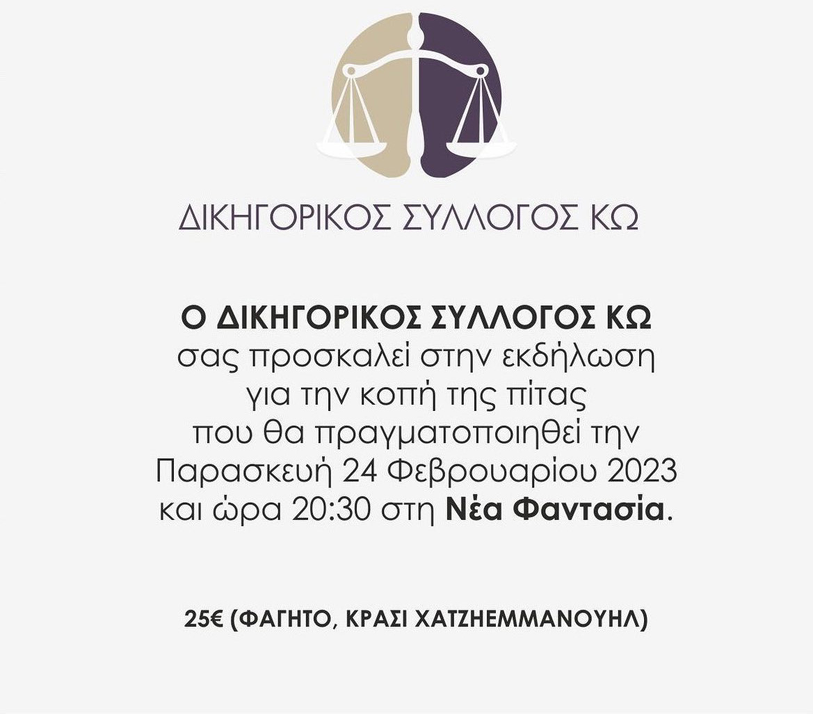 Ο Δικηγορικός Σύλλογος Κω κόβει την πίτα του στη "Νέα Φαντασία"