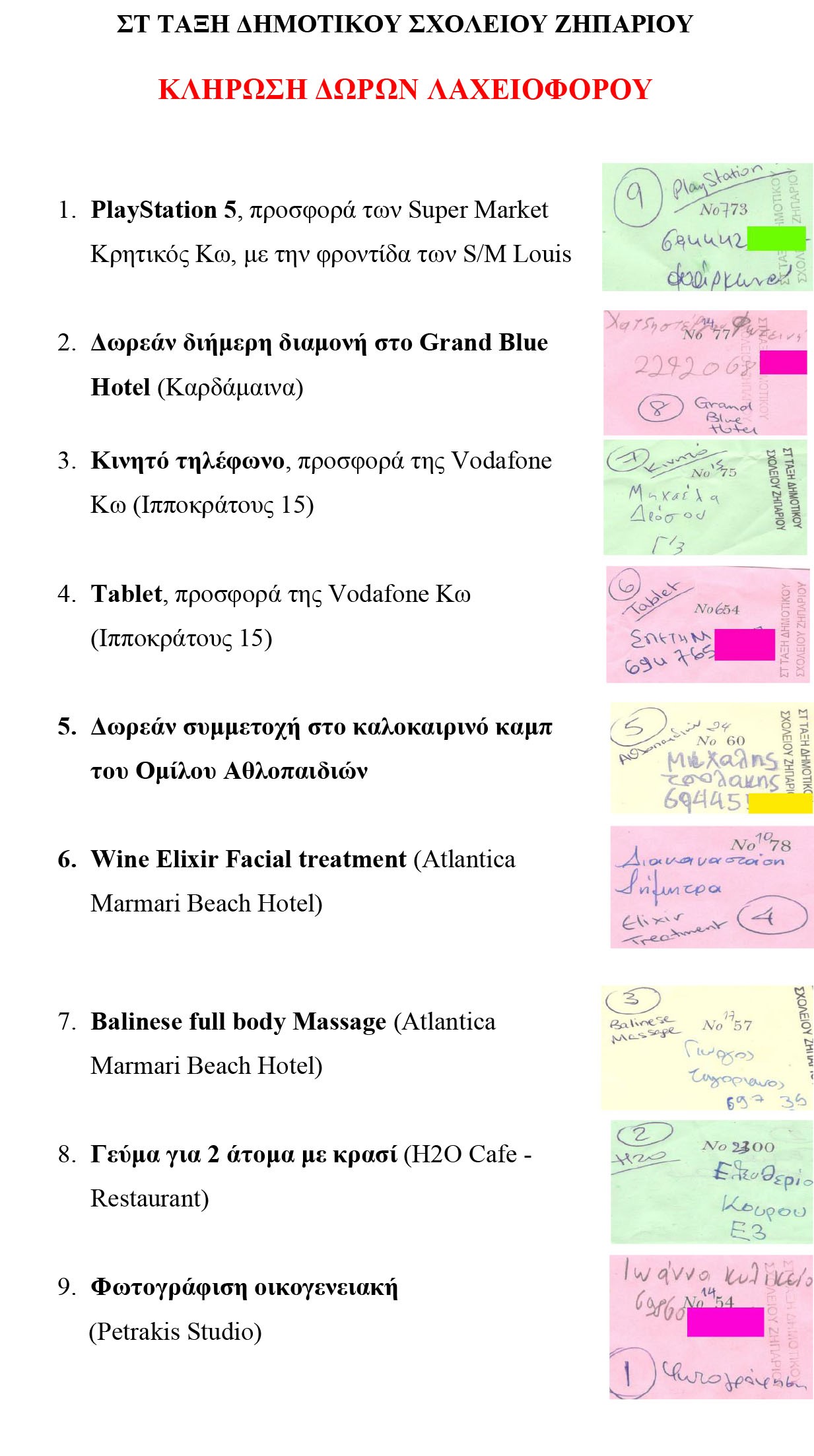 - Το Balinese full body Massage (Atlantica Marmari Beach Hotel) κέρδισε ο Γιώργος Ζαγοριανός, με αριθμό λαχνού 1757.