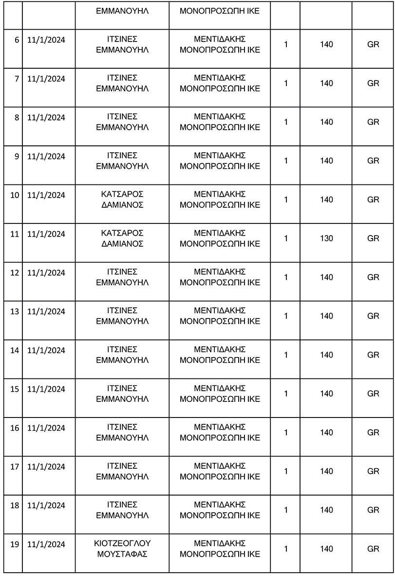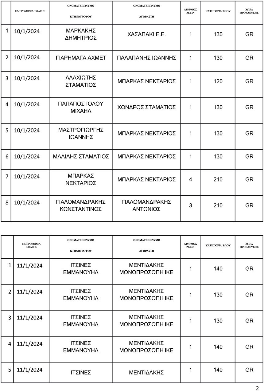 Σας αποστέλλουμε πίνακα όπου απεικονίζονται αναλυτικά οι σφαγές οι οποίες έλαβαν χώρα στο Δημοτικό Σφαγείο Κω την Τετάρτη 10/1/2024 και την Πέμπτη 11/1/2024.