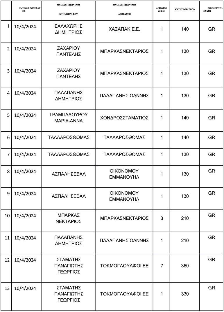 Σε συνέχεια του ανωτέρω σχετικού εγγράφου, σας αποστέλλουμε πίνακα όπου απεικονίζονται αναλυτικά οι σφαγές οι οποίες έλαβαν χώρα στο Δημοτικό Σφαγείο Κω την Τετάρτη 10/4/2024.