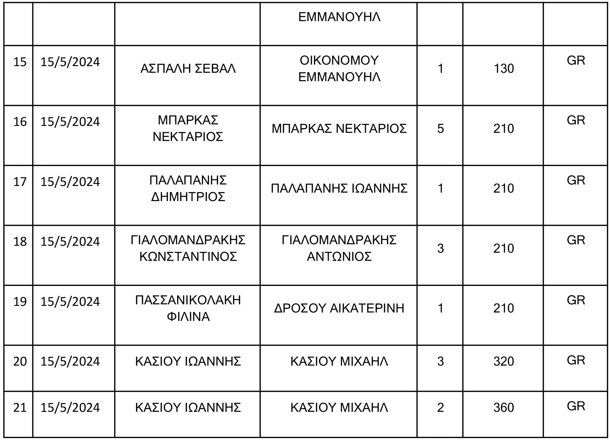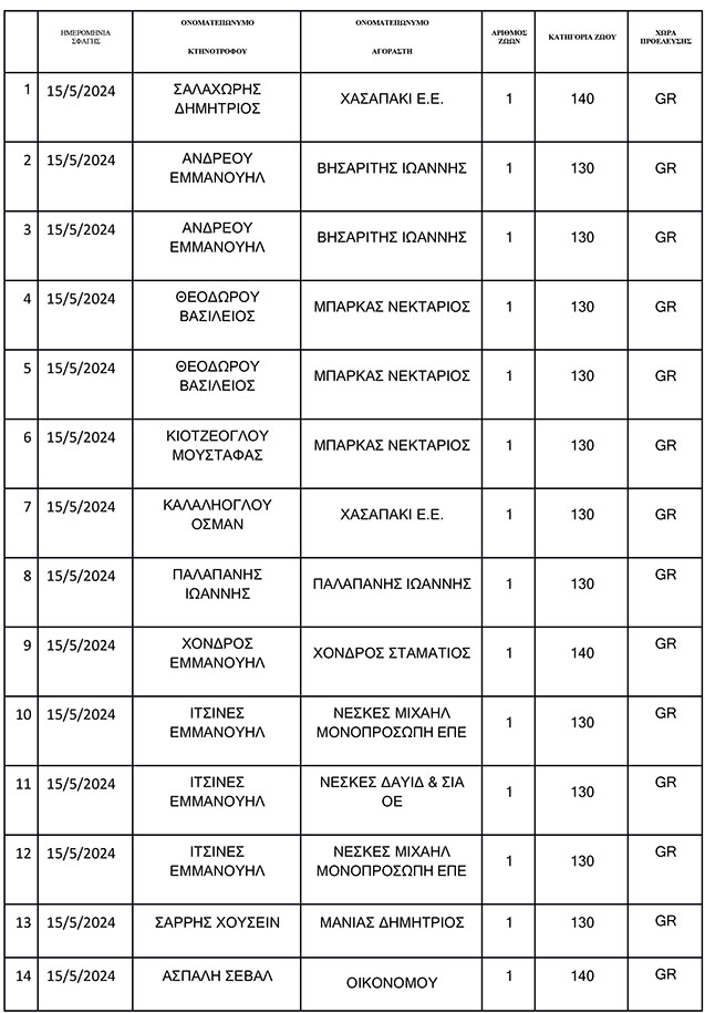 Σας αποστέλλουμε πίνακα όπου απεικονίζονται αναλυτικά οι σφαγές οι οποίες έλαβαν χώρα στο Δημοτικό Σφαγείο Κω την Τετάρτη 15/5/2024.