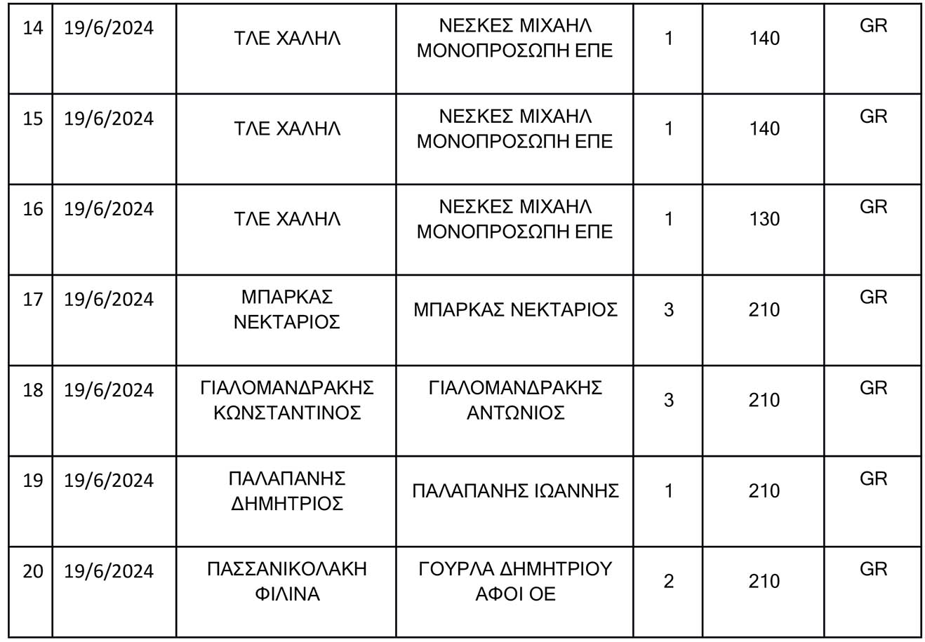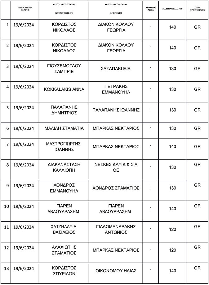Σε συνέχεια του ανωτέρω σχετικού εγγράφου, σας αποστέλλουμε πίνακα όπου απεικονίζονται αναλυτικά οι σφαγές οι οποίες έλαβαν χώρα στο Δημοτικό Σφαγείο Κω την Τετάρτη 19/6/2024.