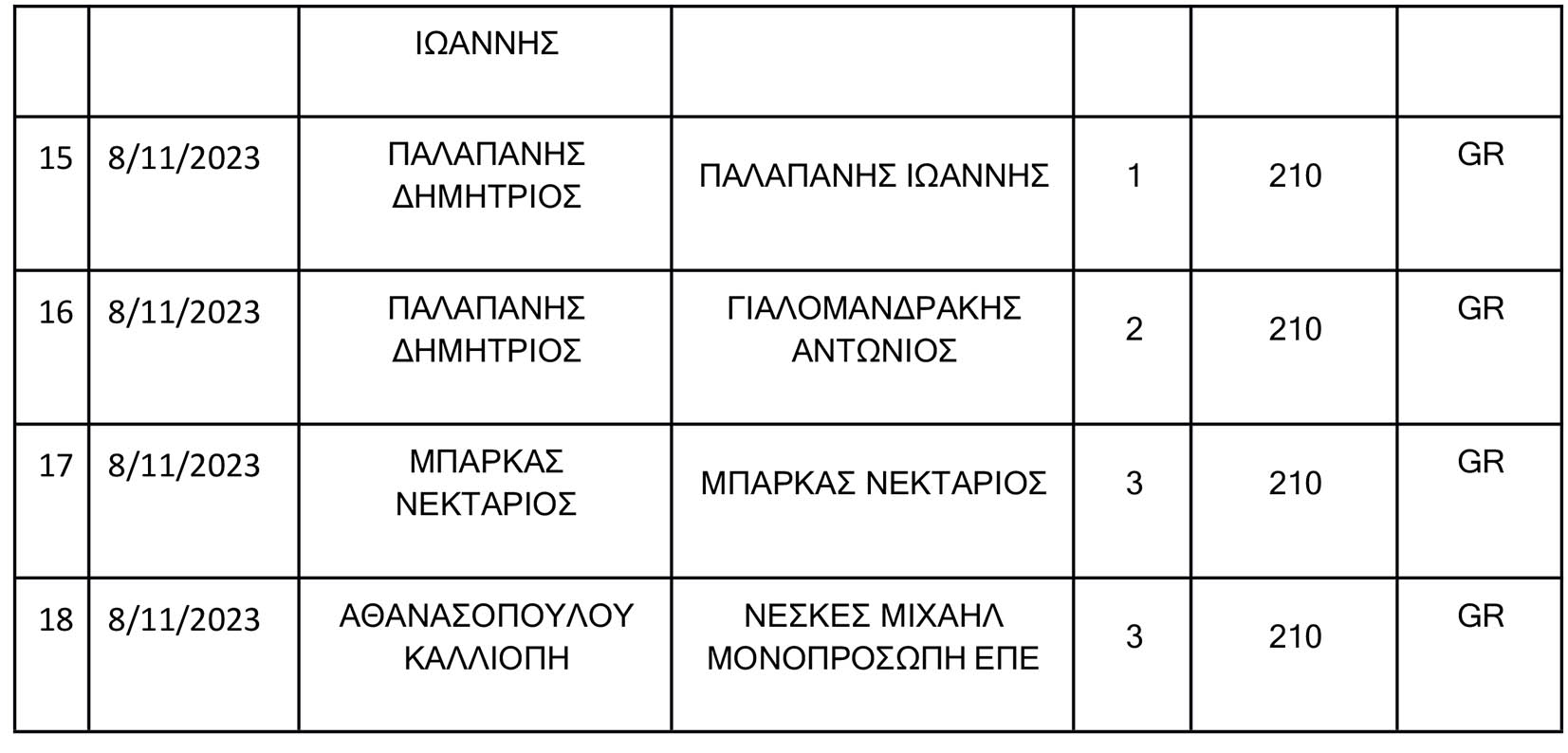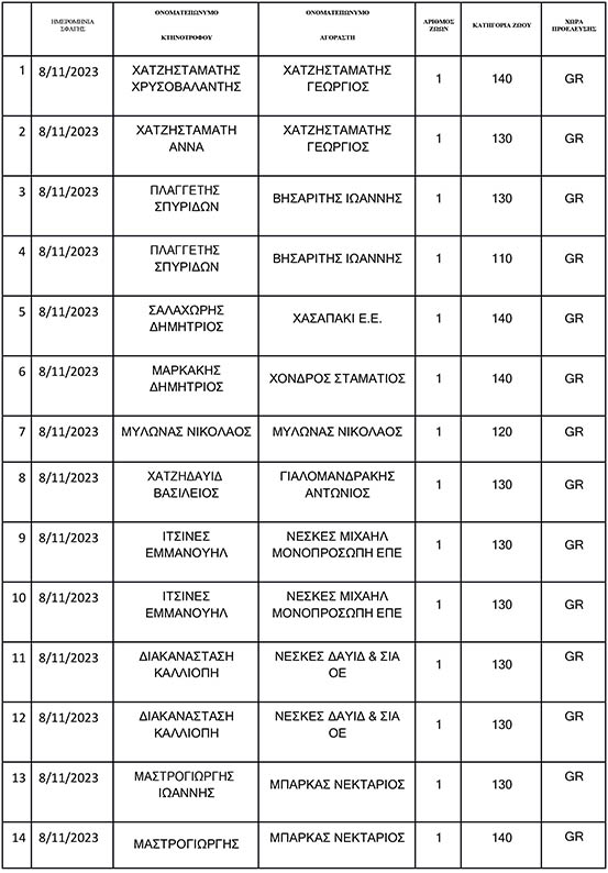 Σας αποστέλλουμε πίνακα όπου απεικονίζονται αναλυτικά οι σφαγές οι οποίες έλαβαν χώρα στο Δημοτικό Σφαγείο Κω την Τετάρτη 8/11/2023 .