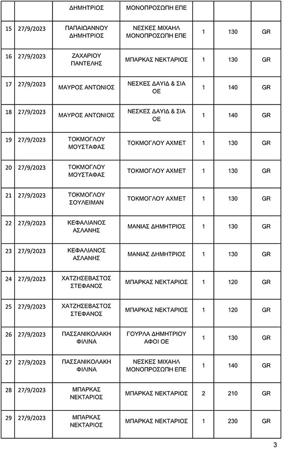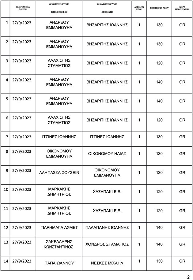 Σας αποστέλλουμε πίνακα όπου απεικονίζονται αναλυτικά οι σφαγές, οι οποίες έλαβαν χώρα στο Δημοτικό Σφαγείο Κω την Τετάρτη 27/9/2023.