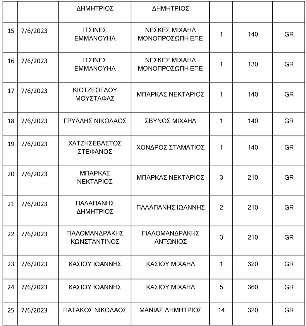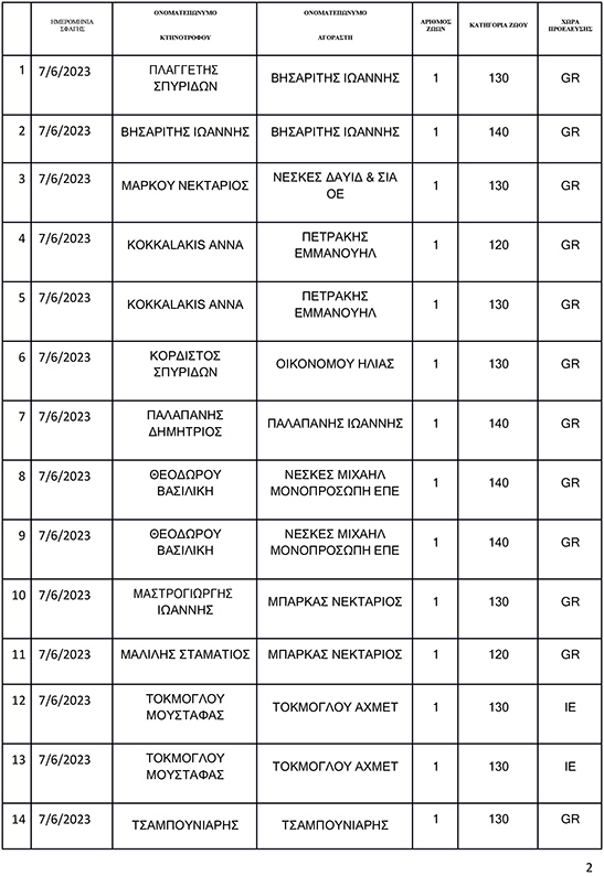 Σας αποστέλλουμε πίνακα όπου απεικονίζονται αναλυτικά οι σφαγές οι οποίες έλαβαν χώρα στο Δημοτικό Σφαγείο Κω την Τετάρτη 7/6/2023.