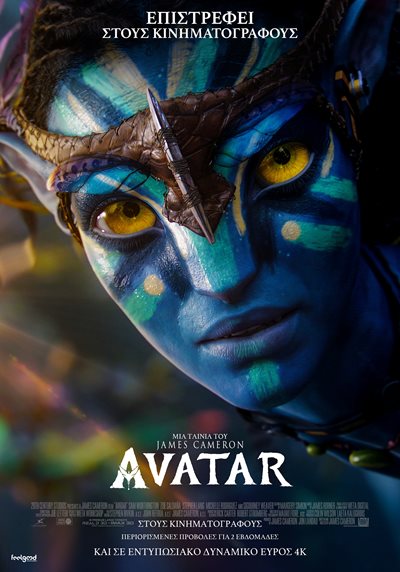 Υπόθεση: Η επική περιπέτεια του 2009, και η πιο επιτυχημένη ταινία όλων των εποχών από τον βραβευμένο με Oscar® James Cameron, επιστρέφει στους κινηματογράφους. H ταινία “Avatar” ήταν υποψήφια για εννέα Βραβεία Oscar®, συμπεριλαμβανομένων Καλύτερης Ταινίας και Σκηνοθεσίας.