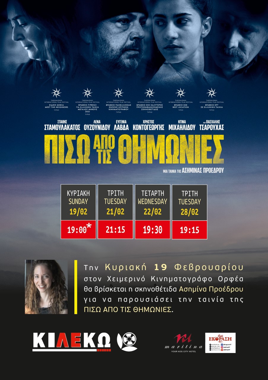 Στις 19/2 θα βρίσκεται κοντά μας η σκηνοθέτιδα Ασημίνα Προέδρου παρουσιάζοντας τη ταινία σε μια ειδική προβολή με την υποστήριξη της Κι.Λε.Κω. Την προβολή θα πλαισιώσει συζήτηση για το σύγχρονα κοινωνικά ζητήματα που αγγίζει η ταινία - γνωριμία με το κοινό.