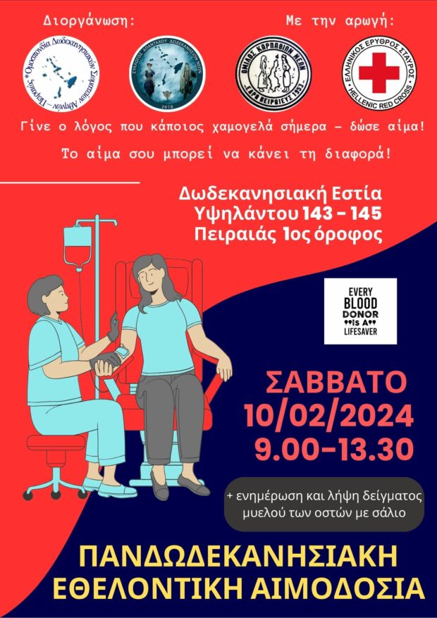 Πανδωδεκανησιακή αιμοδοσία στον Πειραιά – «Η αιμοδοσία πρέπει να πετύχει!»
