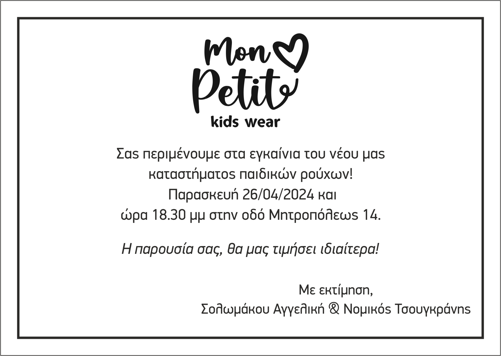 Παρασκευή 26/4 τα εγκαίνια του νέου καταστήματος παιδικών ρούχων "Mon Petit"