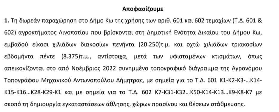 Ιωάννης Παππάς: "Εγκρίθηκε η παραχώρηση τεμαχίων στο Δήμο Κω, για κοινωφελή σκοπό"