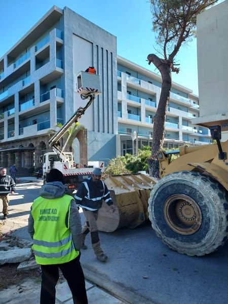 "Σήμερα για ακόμα μια φορά μας βοήθησε ο Θεός, ώστε να μην υπάρξει κίνδυνος της ανθρώπινης ζωής, τραυματισμός ή υλικές ζημιές... Ένα ακόμη μεγάλο πεύκο στην οδό Ελ. Βενιζέλου, δυστυχώς λόγω του καιρού, πήρε επικίνδυνη κλίση με αποτέλεσμα μερικής πτώσης αυτού ... Άμεση ήταν η παρέμβαση της υπηρεσίας περιβάλλοντος του Δήμου μας ώστε να αποφευχθούν τα χειρότερα... Όλοι αγαπάμε το πράσινο και τα δέντρα όμως προέχει η ασφάλεια των δημοτών μας...